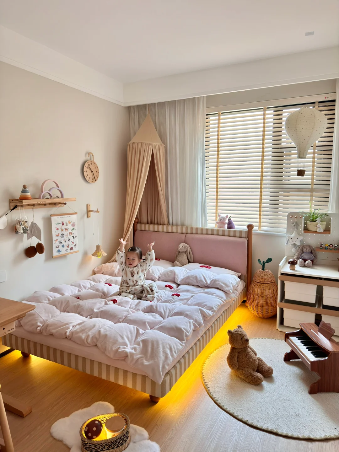 虽然房间不大,但睡眠区、游戏区、阅读角都能安排得明明白白