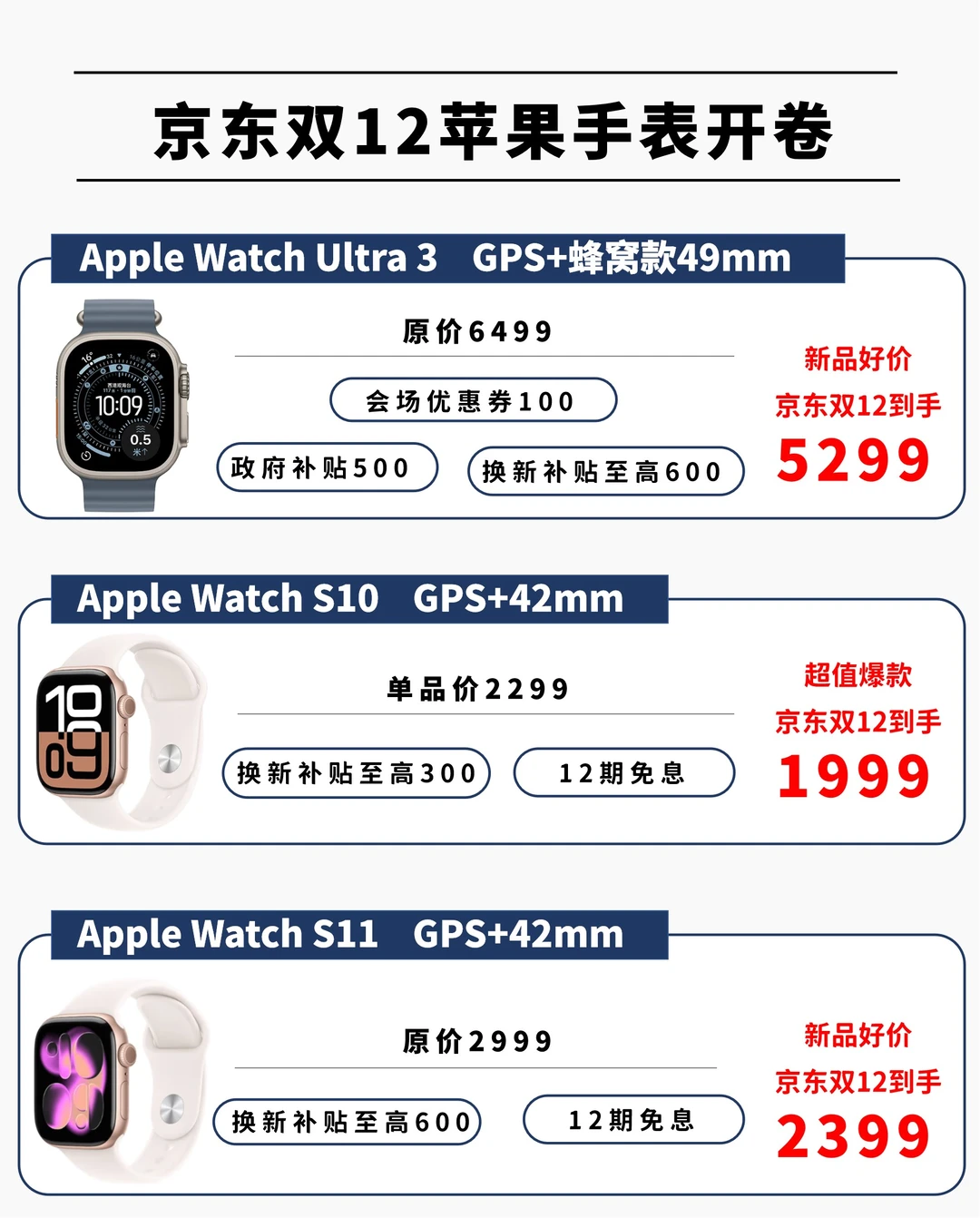 ⌚️ S11:政府补贴293.9+换新至高600补贴后到手差不多 2105.1,比原价低了893.9!
