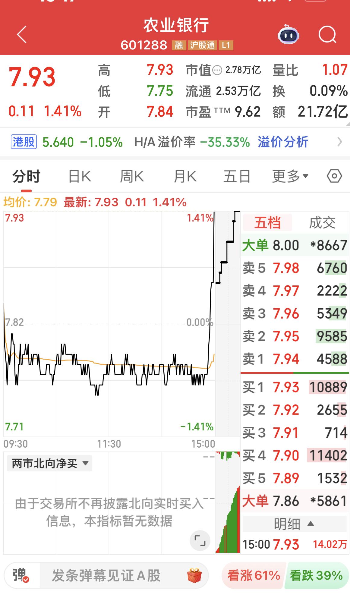 农业银行跌幅超3%! 前一段时间,有位年轻的朋友,他说看到农行一直涨,所以8元