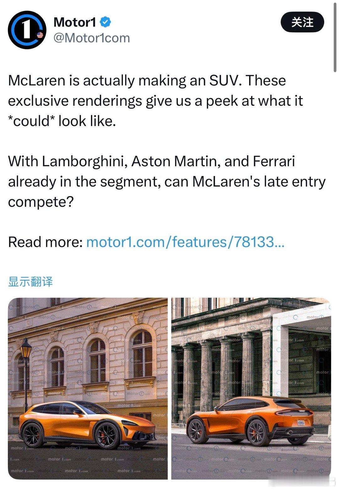 迈凯伦首款SUV 12月11日,据外媒Motor1爆料,“迈凯伦已确认正在打造首款SUV”,而从其独家的渲染图看来,该车型撞脸小米YU7。据消息透露,新车内部代号为P47,预计将搭载一套以V8发动机为核心的混合动力系统。