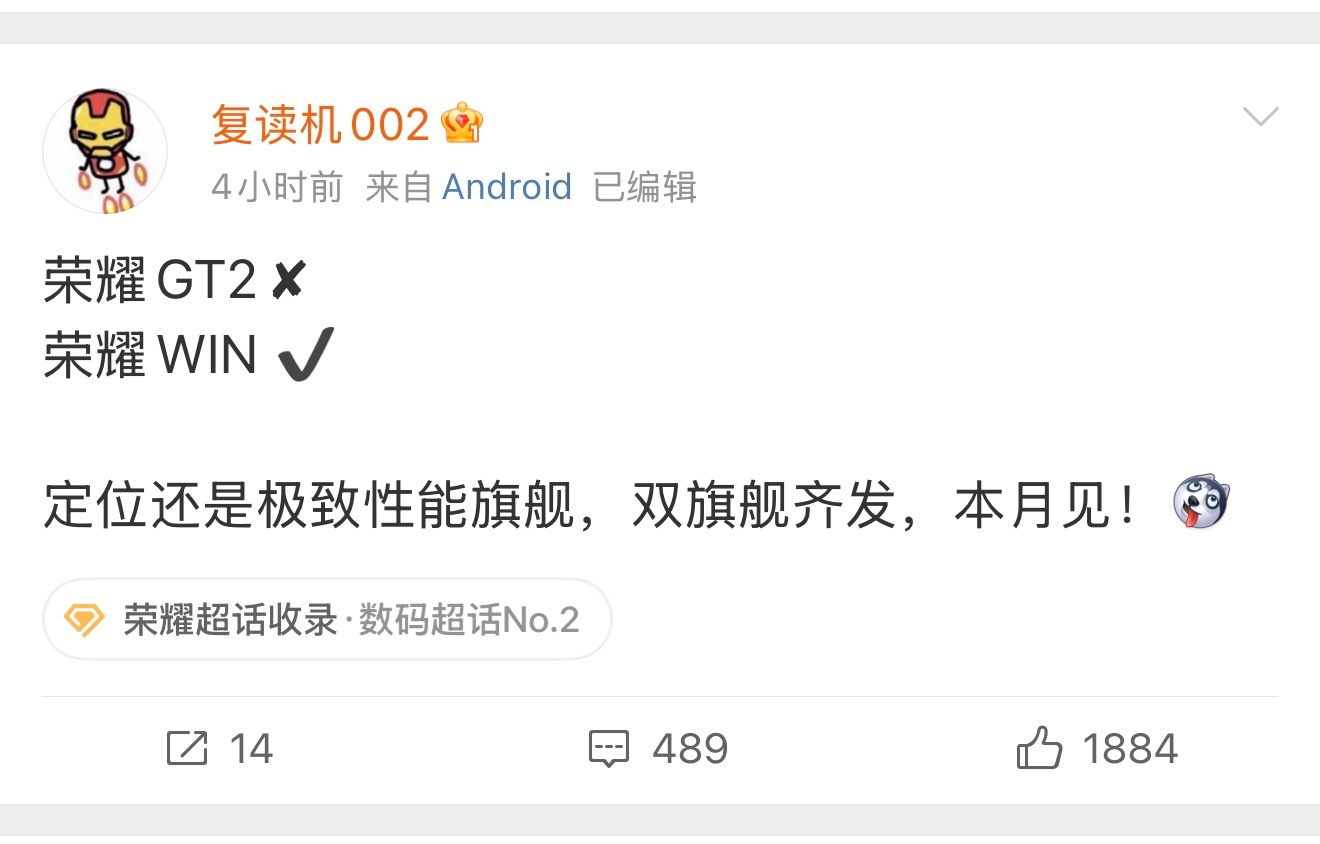 荣耀GT系列改名了,以后叫荣耀WIN,名字改了,但是方向不会变,还是主打性能,不过会更偏向于电竞赛道,而且是双旗舰,这个月就能看到真机。曝荣耀GT2改名荣耀WIN