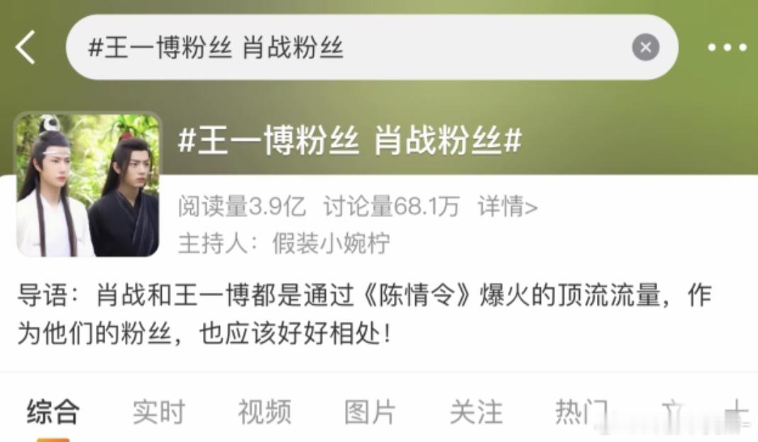 那年的热搜导语是作为肖战王一博的粉丝,也应该好好相处!