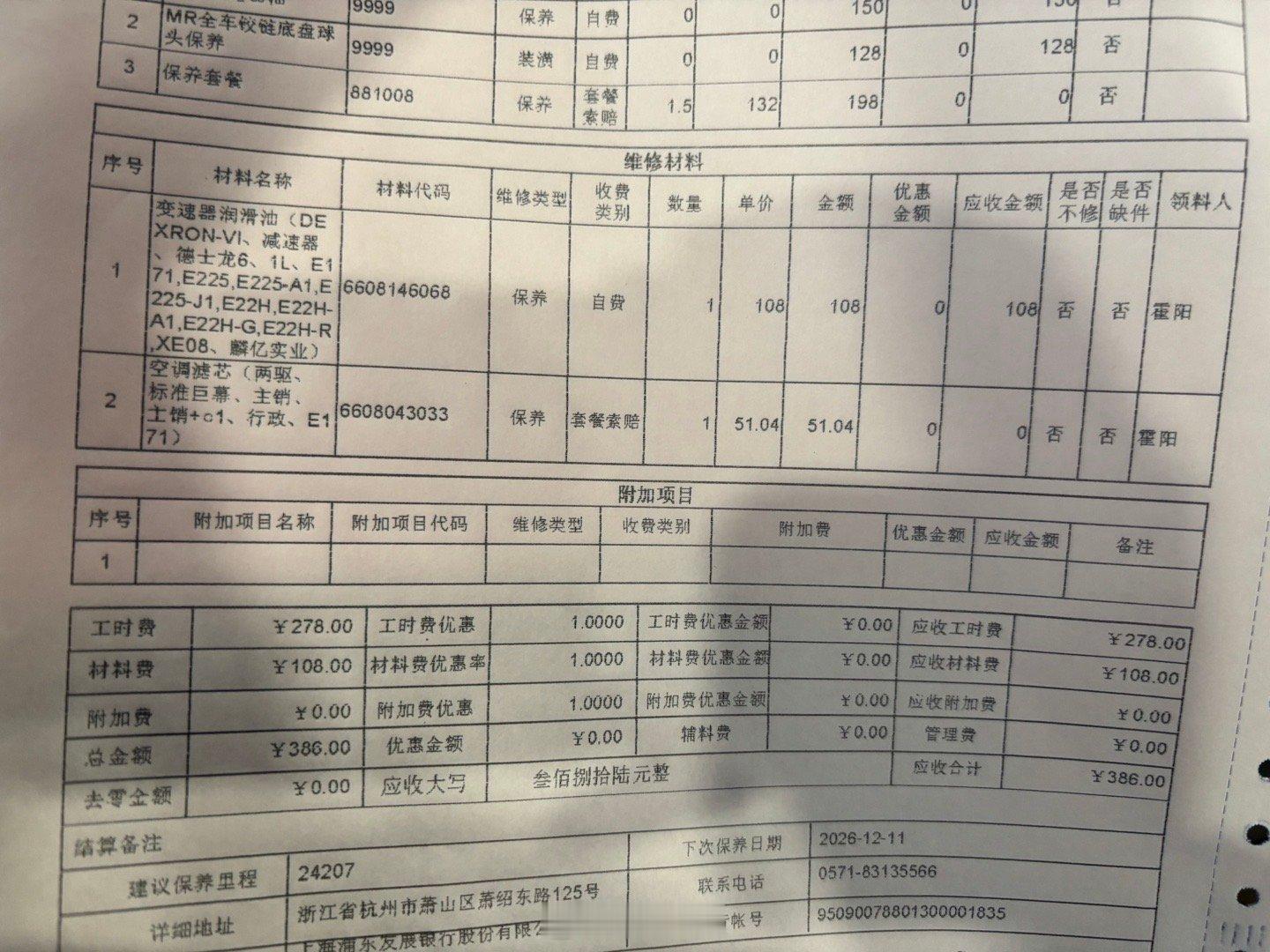 电车保养不花钱?吉利银河E8二保给你们参考一下,实付386。