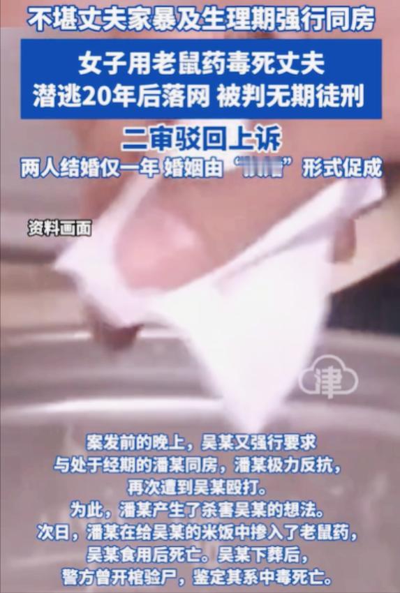 女子因丈夫暴力杀害丈夫后潜逃27年,最终被捕。 江西一女子在长期家暴和丈夫的强迫下,做出了极端选择,在丈夫饭里放了老鼠药,毒死了他。 这一切源自于一场“换婚”。女子的哥哥娶不上媳妇,于是家里安排了她与吴某结婚,结果吴某把她当做泄愤的工具,频频家暴。特别是在她生理期时,丈夫强行与她发生关系,身体和心理的伤痛让她忍无可忍。 这天满床的血让她彻底绝望。第二天她在丈夫饭里放了毒药,丈夫吃后不久就中毒身亡。她没有怜悯,只有解脱。丈夫下葬后,她带着痛苦的回忆悄悄逃离了这个家,开始了长达27年的逃亡生活。 在这27年里,她不断换地方,过得十分艰难,始终无法摆脱内心的痛苦和噩梦。她的失踪引起了村里的议论,有人说她狠心毒死丈夫,也有人认为她是被逼无奈。直到27年后,警方终于找到了她,并将她逮捕。她最终被判无期徒刑,余生将在监狱度过。 一些网友表示,这个女子本是受害者,但最终选择了极端的方式,毁了自己的一生。也有网友反思,家庭暴力伤害了无数人,如果当初能有人伸出援手,或许悲剧就不会发生。 家庭暴力真的很可怕,受害者可能会走向极端。面对暴力我们不能沉默,应该勇敢站出来,寻求帮助。