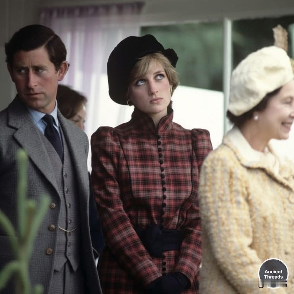 这张照片拍摄于1981年9月5日,地点在苏格兰的布雷马高地运动会(Braemar Highland Games),照片中的人物是威尔士亲王查尔斯(现任英国国王查尔斯三世)、威尔士王妃戴安娜和英国女王伊丽莎白二世(右侧,已故)。 一年一度的布雷马高地运动会是皇室在巴尔莫勒尔堡度暑假期间参加的一项传统社区活动。 戴安娜王妃穿着一件由卡罗琳·查尔斯 (Caroline Charles) 设计的红色格子呢连衣裙,搭配一顶黑色塔姆帽(Tam o' shanter style hat)。 时间背景: 这次活动发生在查尔斯王子和戴安娜王妃结婚后不久,是他们蜜月旅行的一部分,当时戴安娜还是新婚王妃。