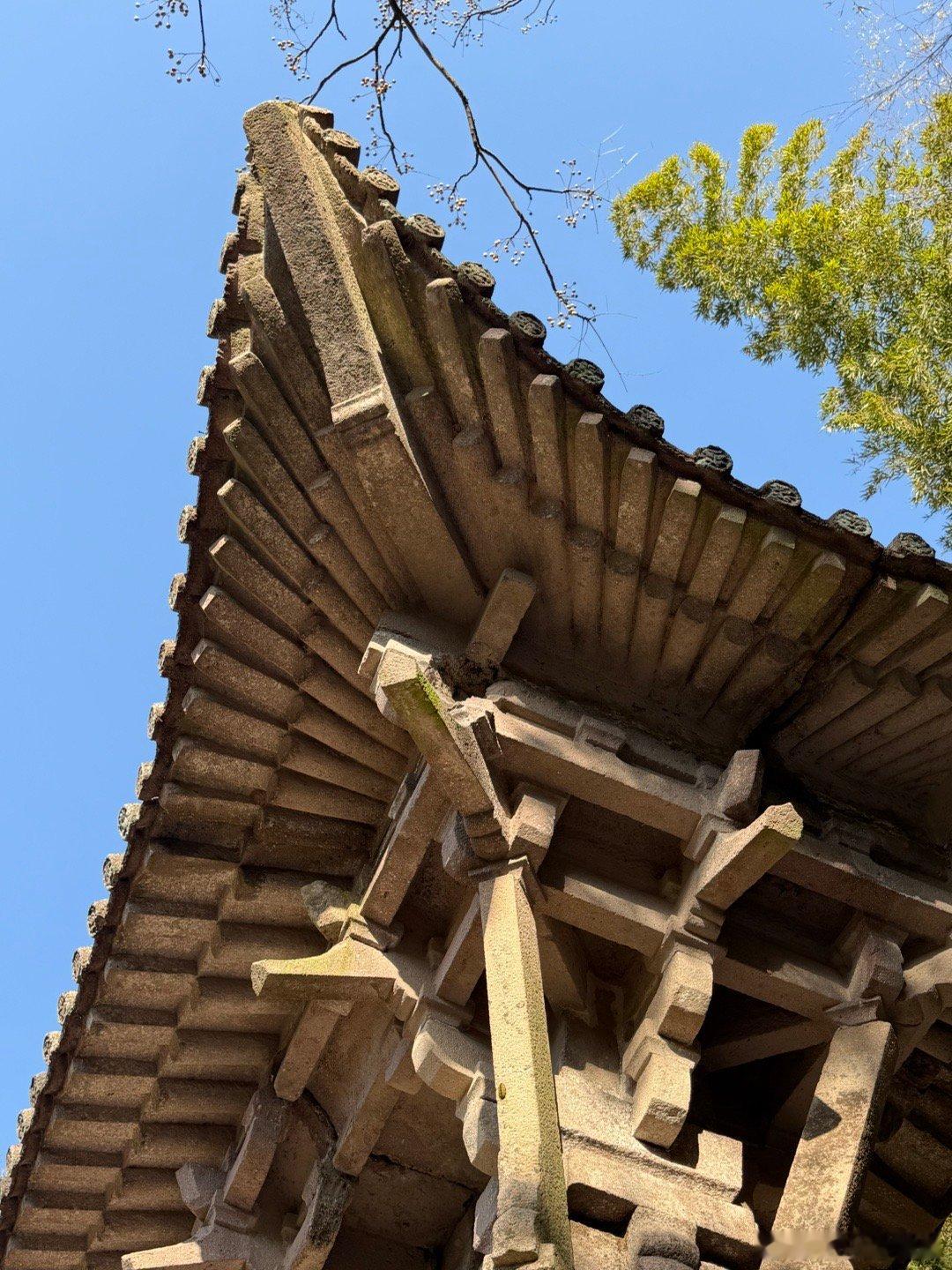 宁波横省、庙沟后石牌坊,南宋-元代,第五批全国重点文物保护单位,全国最古老的两个牌坊。图1-4是横省石牌坊,参观的时候最好中午去,因为周围都是公墓,阳光明媚的时候还好,阴风萧瑟或者月黑风高就让人印象深刻了。横省石牌坊为全石仿木构建筑,采用榫卯结构连接,形制上保留了宋代木构建筑的典型特征,通高5.04米,面阔3.03米,细节处刻有“七朱八白”凹槽。图5-9是庙沟后石牌坊,位于韩岭村东北庙沟后山南坡,原为一座南宋或元代的官员墓前的神道坊,由于墓穴及其他建筑物己荡然无存,所以无法考证。石牌坊坐东向西,面宽3.29米,通高6.16米,斗拱承托屋面,层层叠叠,翼角起翘较大。在转角铺作上使用鸳鸯交颈拱,屋脊有鸱尾和脊兽装饰,重唇板瓦滴水,威严又不失精巧