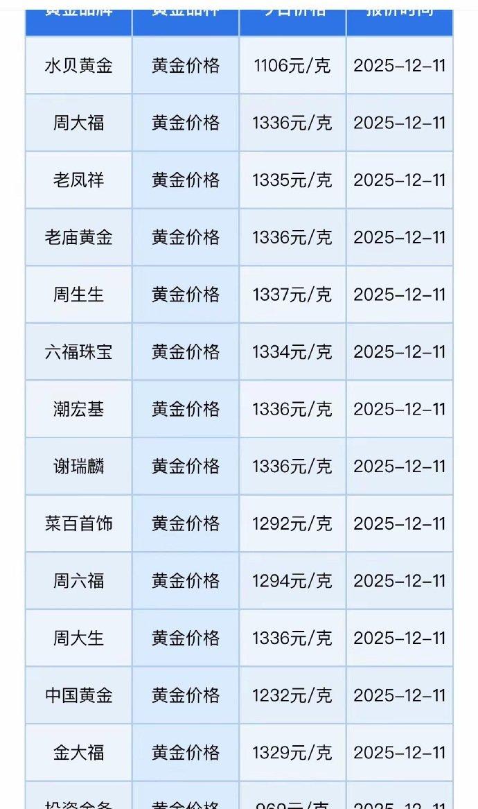 周大福黄金价格1336元克, 老凤祥黄金价格1335元/克, 老庙黄金黄金价格1336元/克, 周生生黄金价格1337元/克, 六福珠宝黄金价格1334元/克。 同比与昨天黄金首饰价格普遍上涨了,其中周大福、六福珠宝各上涨8元,周生生上涨9元,老凤祥上涨10元,老庙黄金上涨了11元。 另外,今天黄金首饰价格每克在1106元到1337元区间(工费另计)。 所有信息都只是提供参考价值! 购买黄金有风险,请大家理性购买!