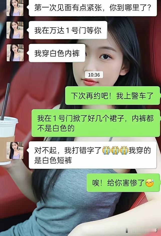 真的没有想到一字之差,就让别人坐上了警车,被警察带回了警局,罪名是猥亵罪,这个女生呢说她穿白色内裤,在万达广场1号门等他,她本来是想发她穿白色短裤,结果发成了白色内裤,结果这个男生呢又是死心眼,然后见一个裙子掀一个姑娘的裙子,你说是不是有点儿不正经,脑子有点毛病,所以说他掀了几个之后,就有人报警了,报警之后然后就带上了警车,当时这个女生联系一直等不上他,结果等联系上的时候已经坐上警车了,她说对不起,我发错了,他们也不知道打个电话,你说这是不是活该?脑袋缺一根筋?