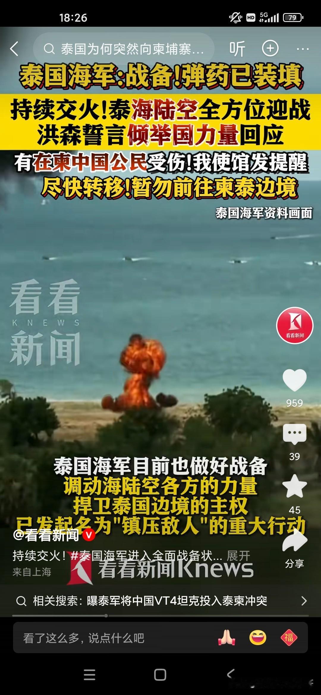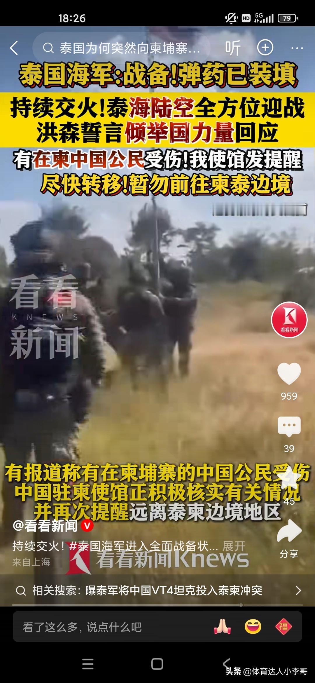 这次泰国的国王和王后来北京访问,在回泰国的时候,他们特别开心,这是50多年来泰国国王和王后首次访问中国北京,他内心非常开心和满足,不仅是因为我们要继续修建中泰铁路,还要购买他们的水果或者是大米,还收获满满,当然我觉得我猜测一下,估计他要和柬埔寨发生这个冲突,战争肯定是和中国报备过的,因为柬埔寨也是中国的老朋友,但是洪森现在不听话呀,根本不听中国这个这边的劝说,包括我们的中国驻柬埔寨大使也是三番五次的劝说洪森不要和泰国发生冲突,不要和美国眉来眼去,但是他根本不听指挥,最后就发生这样的悲剧,泰国不仅进口了美国的先进战机,还进口了中国的很多先进坦克,所以说现在的话柬埔寨已经处于下风了,因为柬埔寨的空军和海军太弱了!