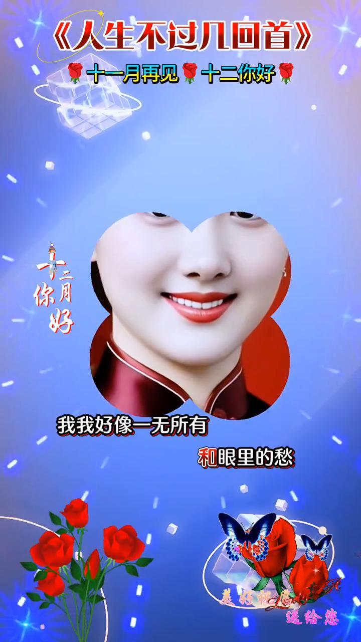 《人生不过几回首》。 ·十一月再见,十二你好。如果真的有人来问候,我会忍不住泪流。 ·十二月再见,十二你好。岁月给我留下了什么?短短一句话哽住了喉。 ·三月好,十二你好。除了眼角的皱,和眼里的愁。 ·二月好,十二你好。我好像一无所有。 ·三月好,十二你好。一回首故人已远走,蓦然重逢在今秋。 ·四月好,十二你好。二回首往事化成酒,我清孤独又一口。 ·五月好,十二你好。三回首青丝已白头,时间不肯慢些走。 ·六月好,十二你好。再回首若走到尽头,此生谁把我挽留。