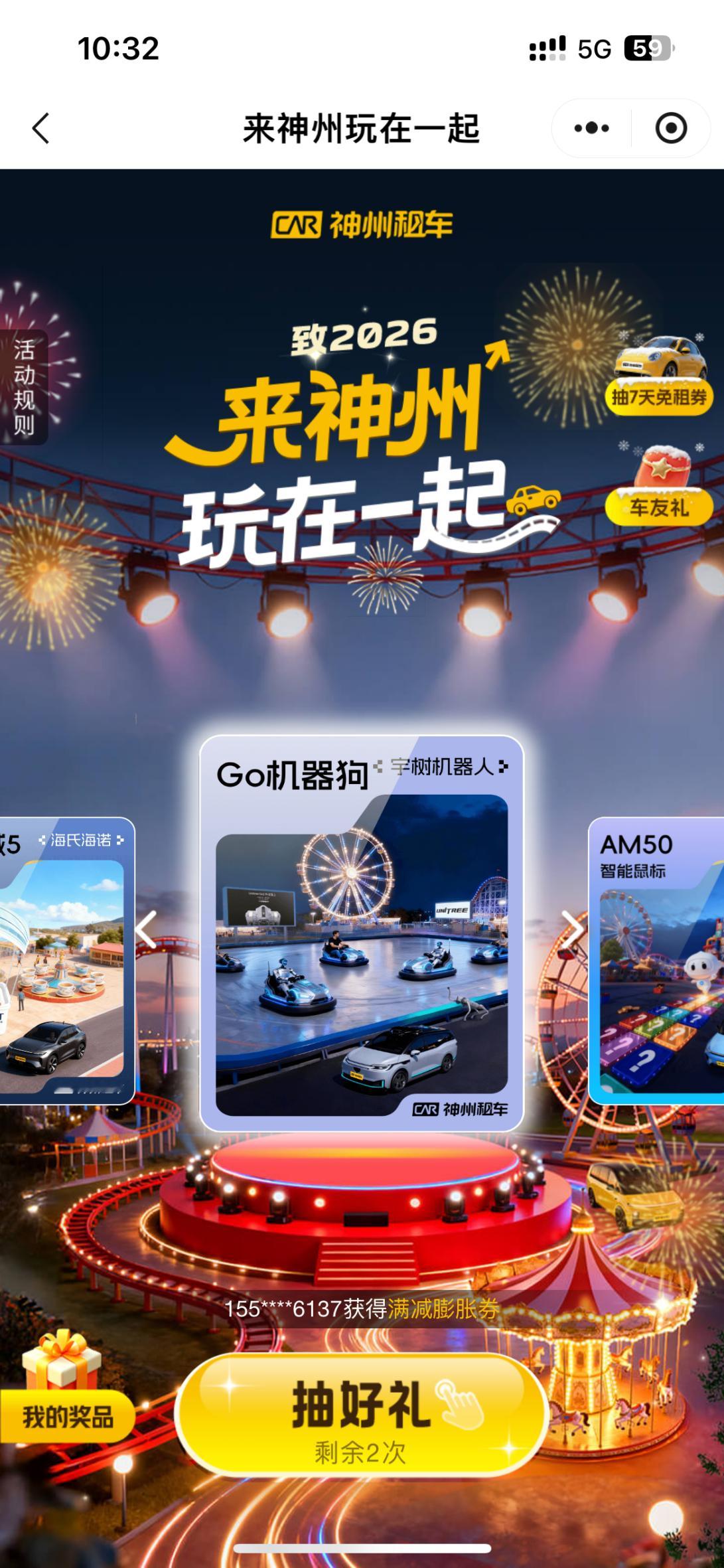 用一场旅行偿还被偷走的时间果然年底要相信奇迹!随手在神州车友会小程序抽奖就抽中了神州租车和宇树科技的联名礼,神州租车这波年终关怀太到位了,来神州玩在一起!最近神州租车携手18家品牌挚友送出年度重磅好礼~现在打开神州车友会小程序参与抽奖,即刻领取奖品一起开玩,快来参与吧!来神州玩在一起神州处处有神州