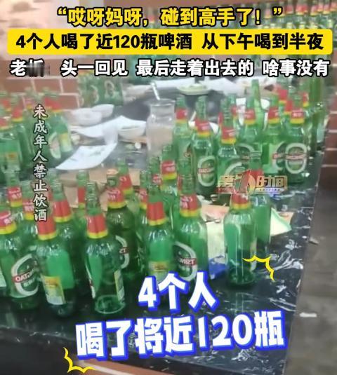 12月9号吉林这家饭店,4个大老爷们干出的事儿太牛了! 当天下午5点,这4名男子就进了吉林某家饭店,一坐下就开始点酒。 饭店老板一看,好家伙,直接要了10箱啤酒! 老板心里直犯嘀咕,这喝这么多,不得闹出啥事儿来啊? 老板赶紧劝:“哥几个,少喝点,喝多了难受。”可这4人根本不听,最后愣是点了12箱! 从下午5点一直喝到半夜12点,这7个小时里,他们就像喝水一样,一瓶接一瓶地往肚子里灌。 老板在旁边看得眼睛都直了,这4人喝酒的时候,脸都不红一下,跟没事儿人似的。 老板心里那个震惊啊,开店这么多年,还是头一回见这么能喝的! 最后,这4人喝完酒,居然还能自己清醒地走出门,一个个稳稳当当的,完全不像喝了那么多酒的人。 这事儿一传开,网友们都炸锅了,纷纷留言惊叹:水里掺酒了?这酒量,简直不是人啊! 还有不少网友表示,早就听说东北人酒量好,这下算是见识到了,有机会一定要去东北体验体验。 说起东北人酒量好,其实也是有原因的。 东北那地方冷啊,冬天零下好几十度,为了取暖,大家就有喝酒的习惯。 时间长了,这酒量也就练出来了。所以啊,在东北,能喝酒的“爷们”可真不少。 这4名男子的酒量,真是让人佩服得五体投地。 不过啊,咱们也得提醒一句,喝酒得适量,可别学他们这么猛喝。 毕竟,身体是自己的,喝坏了可没人替你受罪。 大家说是不是这个理儿?快来评论区聊聊你的看法吧!