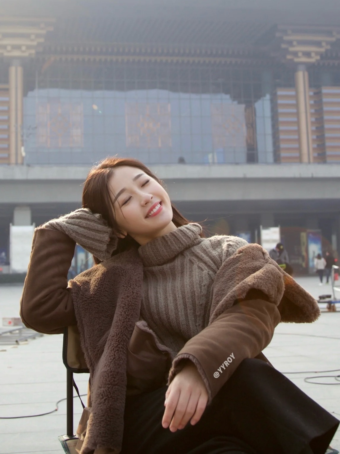 吴艳妮在成都穿着短裤大腿看起来很粗壮,表情自信又张扬