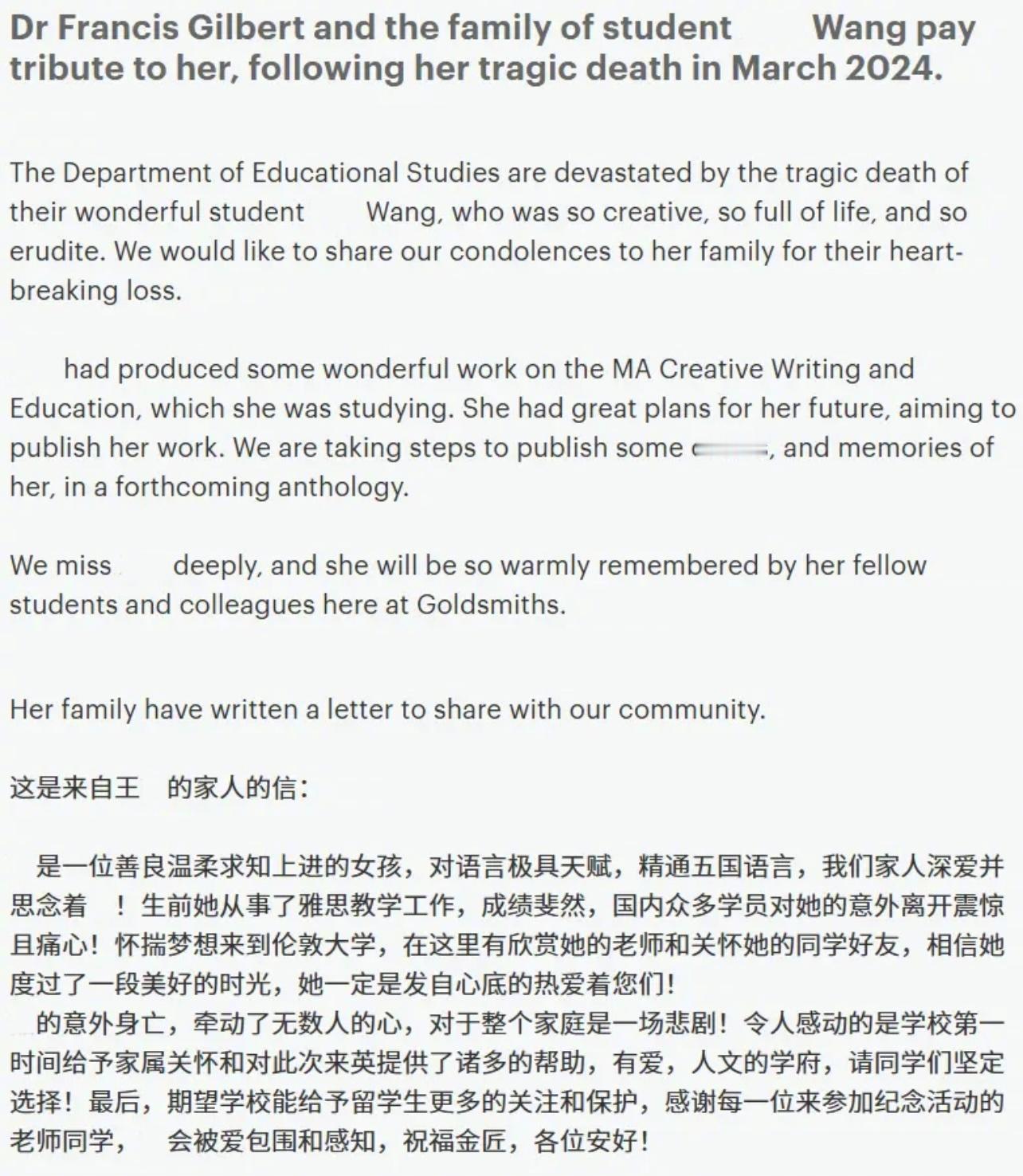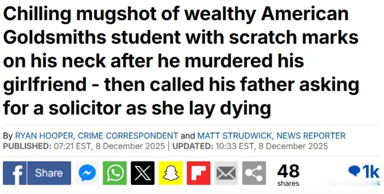 美国富二代在英国刺伤中国女留学生后逃跑,任女方伤重不治死在现场。在女友濒死的夜晚,他打出的第一通电话不是报警或者呼叫救护车,而是向身在美国的富豪父亲求助,如何摆脱嫌疑。之后,他处理衣物和丢弃食物物品,并且删除聊天记录,试图掩盖现场痕迹。原本女方受伤后仍有30至60分钟的生命窗口,如果及时呼叫救护车,她很大可能会活下来。但他不是选择送医,而是与律师和父亲讨论如何脱罪,直到几个小时后才叫救护车,导致女方抢救无效身亡。事后还颠倒黑白,称只是正当防卫。2024年12月8日,伦敦高等法院的判决:26岁的美国富二代约书亚·米卡尔斯谋杀31岁中国留学生王哲的罪名成立。这起拖延了一年多的案件,揭开了一段始于校园,终于血泊的惨剧真相。2023年初,伦敦大学金史密斯学院,两个背景迥异的研究生相遇了。来自美国芝加哥的约书亚·米卡尔斯,26岁。成长于优渥的家庭——父亲是一家美国公司的销售副总裁,而他自己大学主修电影制作,之后来到伦敦大学金史密斯学院继续攻读电影制作硕士。他住在格林尼治的高档公寓,社交账号上满是文艺旅行和电影创作的照片。而来自中国的王哲,31岁,同样在金史密斯学院念硕士。学的则是创意写作与教育。她安静细腻,有轻度洁癖,计划完成博士学业后回国任教当老师。在学院眼中,她是“杰出的作家”,作品将被收录进当年的学院文集。在亲友眼中,王某温柔体贴、幽默友善,性格开朗而细腻,很有自己的思想。学校在纪念她的页面写到:“她的作品融合了佛教思想、富有想象力的叙事和清晰的思考,是一位独特而杰出的作家。”这段关系从一开始就埋下了不对等的种子。王哲曾明确告诉约书亚,自己在寻找共度一生的伴侣。约书亚却从未向她坦白——他只想要一段“随意的关系”。交往期间,约书亚既不投入,也不愿花时间陪伴她,他常常数周不见她。甚至在交往期间,他还曾与他人发生性关系。直到2024 年 2 月,交往半年后,王哲才终于同意与他发生关系。王哲是一个有洁癖的女性,她坐沙发前会先消毒,并且每次去男友家时都会忍不住打扫他的公寓。在这次发生关系前,她要求约书亚提供性病检查证明。还特地发给男友一套“流程”,包括如何进入她的公寓、如何清洗自己、如何戴上安全套,然后才去卧室,她会在那里等着他。当晚,是他们之间唯一一次性行为。事后,王哲身上出现红疹,情绪开始失控,陷入极度焦虑,怀疑自己感染了性病。并反复要求约书亚一同检查是否感染性病。她说自己宁愿死也不愿染病,指责约书亚不诚实,将病毒传染给了她,多次强烈要求他一起检查,并说要“拖着”他一起去。但约书亚拒绝并回避沟通。王哲在信息中写道:“如果得了病,还不如死了算了。”情绪在2024年3月19日达到顶点。王哲发送了大量愤怒而绝望的信息。第二天,约书亚带着草莓、葡萄、奶酪等食材来到她的公寓,声称要“缓和气氛”。晚上7点多,他发信息说:“here(到了)。” 这是两人最后的联系记录。关于接下来发生的事,只有约书亚单方面的陈述——但证据给出了截然不同的答案。约书亚声称,王哲“像发狂一样”持刀攻击他,他夺刀自卫时不慎刺中她的脸。然而,法医报告显示:王哲面部的刺伤集中在上半脸,角度自上而下,力度很深,不像混乱中的误伤,更像有目标的攻击。更关键的发现是:王哲受伤后仍有30至60分钟的生命窗口。如果及时呼叫救护车,她很可能会活下来。但约书亚的选择令人心寒。他没有拨打电话报警或者呼叫急救车,而是把奄奄一息的女友扔在原地,并拿走了她的手机丢进外面的垃圾桶,自己离开公寓,下楼打了一辆车回家。上车后,他拨通了一通越洋电话——打给远在美国的父亲。这段通话的主题只有一个:让父亲替他联系律师。回到公寓,他系统性地销毁证据:换下血衣、丢弃刀具和剩余食物、删除所有与王哲的聊天记录。三小时后,他才敷衍地报警,称“发生了刀具事件”,却强调自己“不在现场”,并在接线员追问时挂断电话。警察找上门时,约书亚立刻声称自己只是在王某攻击他时自卫——但他留下来的证据连他自己想象不到。警察从服务器中还原了两人的长时间对话,还找到了他扔掉的东西,还原了完整的时间线。当警方询问为何延迟报警?他冰冷的回答:“我当时还没准备好。我不觉得有什么需要着急的。”警方从服务器恢复了被删除的聊天记录,并找回丢弃的物品,构建出完整时间线。约书亚脖子上有轻微划痕,但侦探表示:“这不像刀具造成的搏斗伤,更像指甲或抓痕。”检方强调,他的行为模式与“自卫”完全不符:面部刺伤位置精准,不像慌乱误伤;自卫成功后理应立刻报警;逃离、销毁证据、删除记录表明清醒的掩盖意图,这反而能够说明他当时头脑清醒。最关键的是放任受害者死亡,毫无施救的尝试。“他不是在恐惧中失手,而是在谋求自我保护,试图掩盖罪行。”侦探克莱尔·吉弗在法庭上指出。12月8日,陪审团经过16个多小时的审议,一致裁定谋杀罪成立。王哲的朋友和导师在庭上回忆,她是个“安静有礼、写作极有天分”的人,对佛学与冥想深感兴趣,总是温柔关心他人。她的博士计划和教师梦想,永远定格在了31岁。而约书亚成长于特权环境,父亲在他被捕后迅速从美国飞抵伦敦,聘请高价律师团队。这种“爸爸能解决一切”的思维,或许部分解释了他为何在关键时