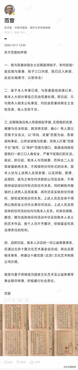 范老先生, 年近鲐背之年,喜得独子! 新居新妻新子, 一家三口, 长厢厮守, 以慰余生!