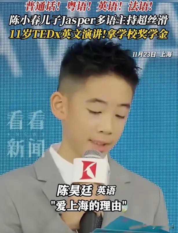 58岁的陈小春 给所有网友提了个醒 娶妻一定要娶贤,不信你看他儿子,才11岁就开始给老父亲争气了 陈小春,可以退休了[笑哭] 3年前,应采儿执意从香港搬到上海,不是为了老公,而是为了儿子的教育,据悉,陈小春儿子就读 上海耀中国际学校,是上海排名靠前的贵族学校,一年学费就要30万。 这个学校,还有吴尊儿子、杨千嬅儿子、陈浩民女儿、王祖蓝女儿等。 如今的Jasper,已熟练掌握普通话、英语、粤语,还掌握了基础法语,11月,他用中、英、粤三语流利主持校园活动,大放异彩。 难怪古代孟母要三迁呢,好的学校,真的能教出优秀的学生。[泪奔] 杨威的儿子杨阳洋,却反其道行之,独自去香港读高三,因为英语跟不上,每天还要去深圳补习,他和姥姥在香港租房住,每月生活费有限,买水都要货比三家,篮球鞋磨坏了才换,夏天把空调调到26度,晚上也会关掉多余的灯来省电。此外,他回家时还会给双胞胎妹妹当英语家教赚外快,收费100 - 250元/次。 这么大的孩子,把生活过的这么拮据,虽然懂事,但想想就好惨。[笑哭]