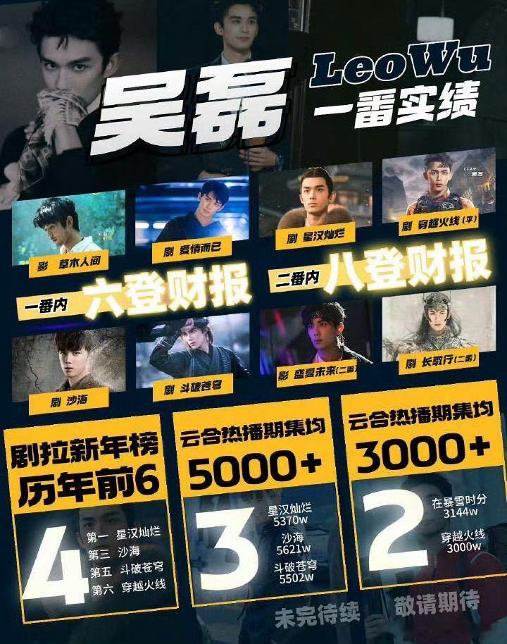 吴磊星光值暴涨 来看我们吴磊的大男主男频剧剑来,商务和星光都是顶级排面,期待这个The One的唯一大男主陈平安!!!