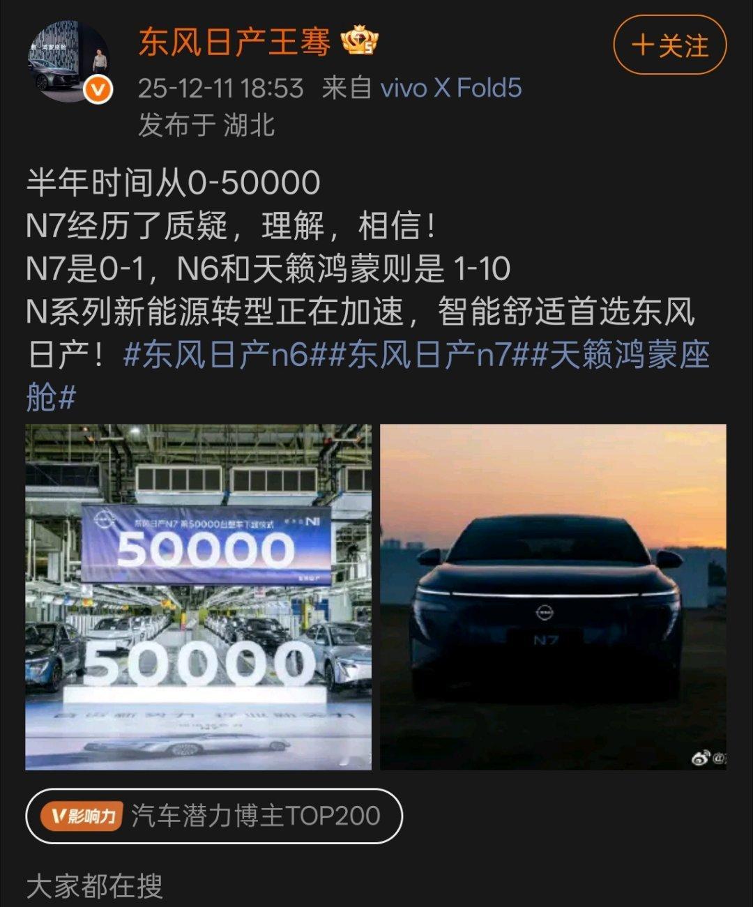 谁能想到合资杀出个日产N7,半年卖了50000台。从日产开始,我才知道新能源的格局不再是国产或新势力的独占,合资会进来得很快,很凶。不管从营销、产品、还是交付,任何方面新能源汽车东风日产n7