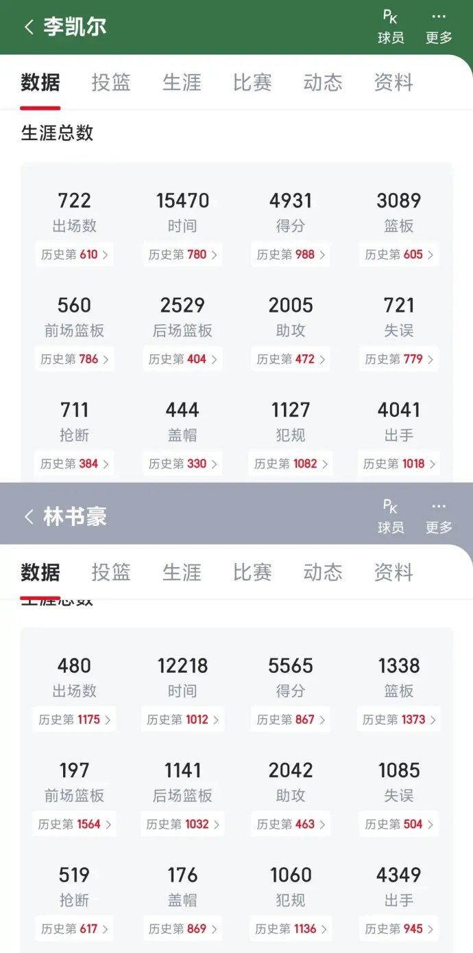 渡边雄太在NBA拿了快一千分是我没想到的,比大致还高。林书豪和李凯尔的总得分都在五千分这一档,克拉克森独一档,都一万二了。