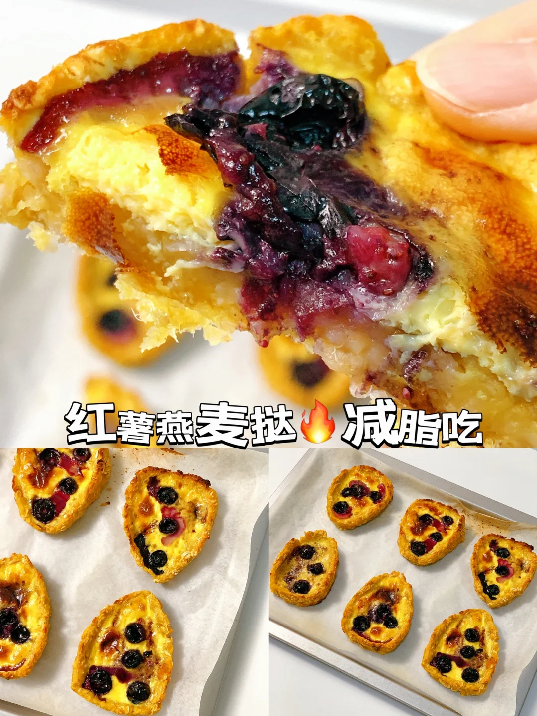 食材:红薯,即食燕麦,牛奶,鸡蛋,白糖,蓝莓🫐