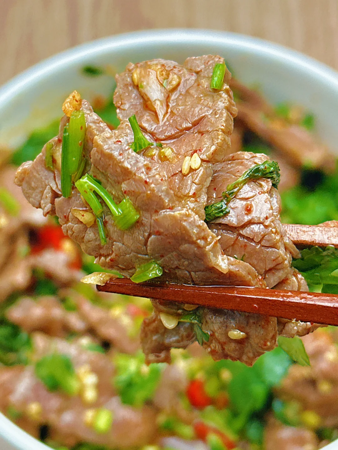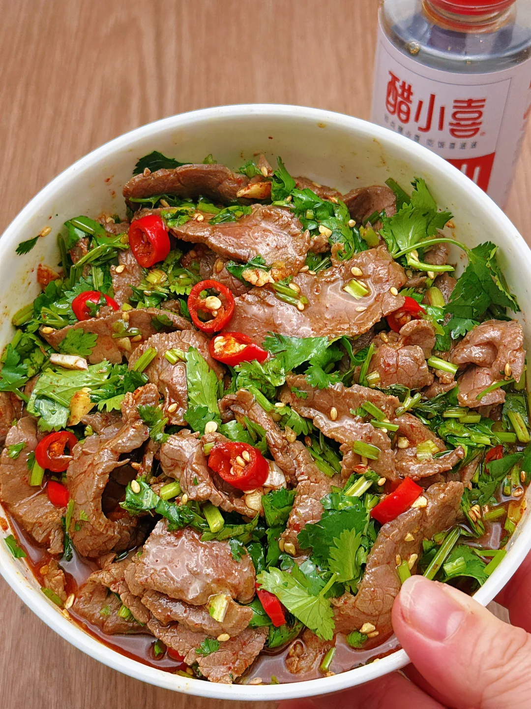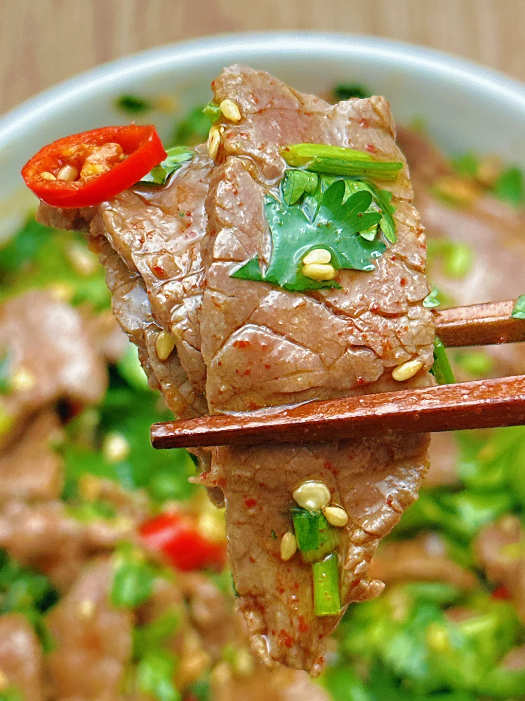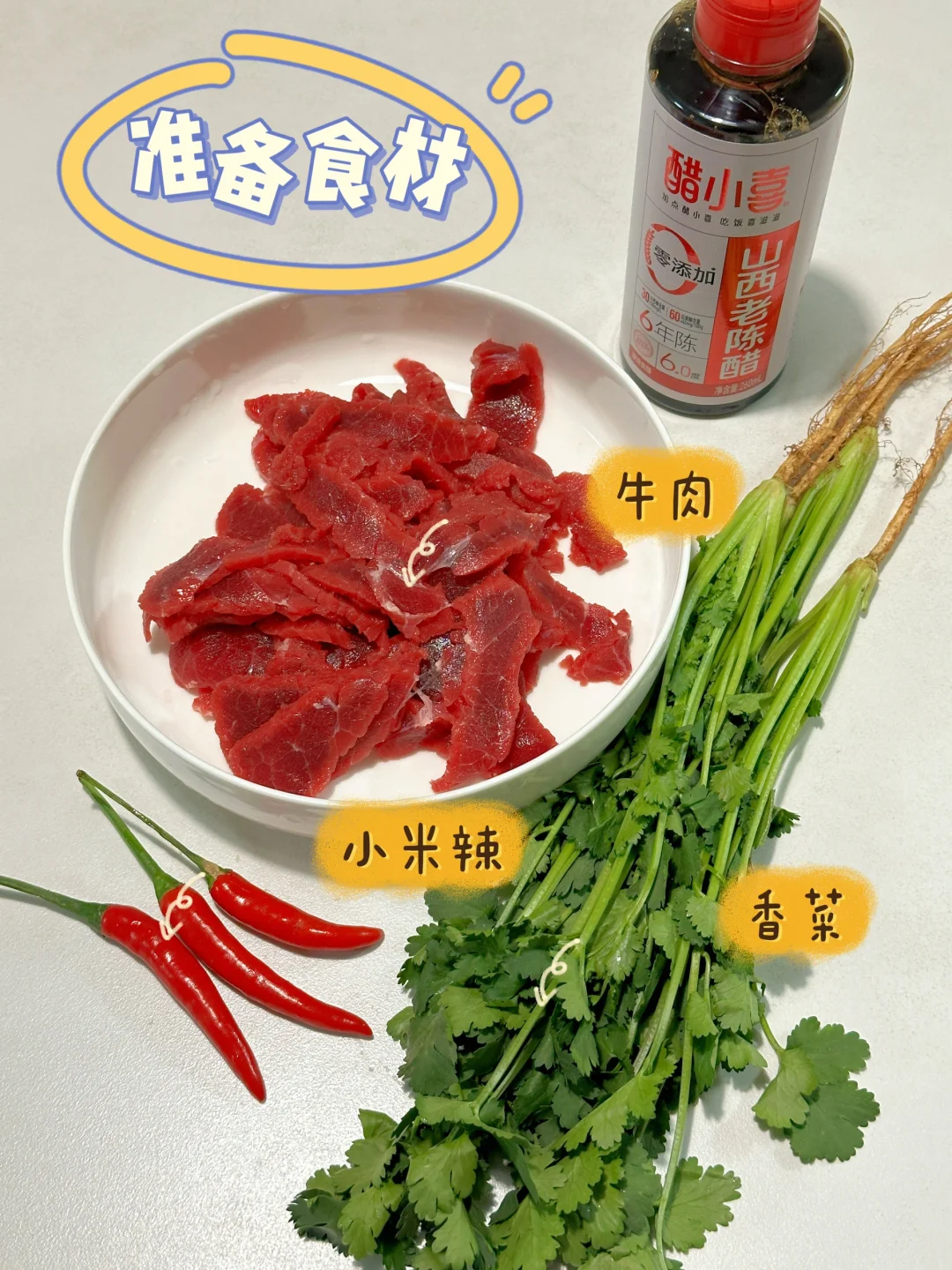 🥗食材:牛肉、小米辣、香菜、 蒜末