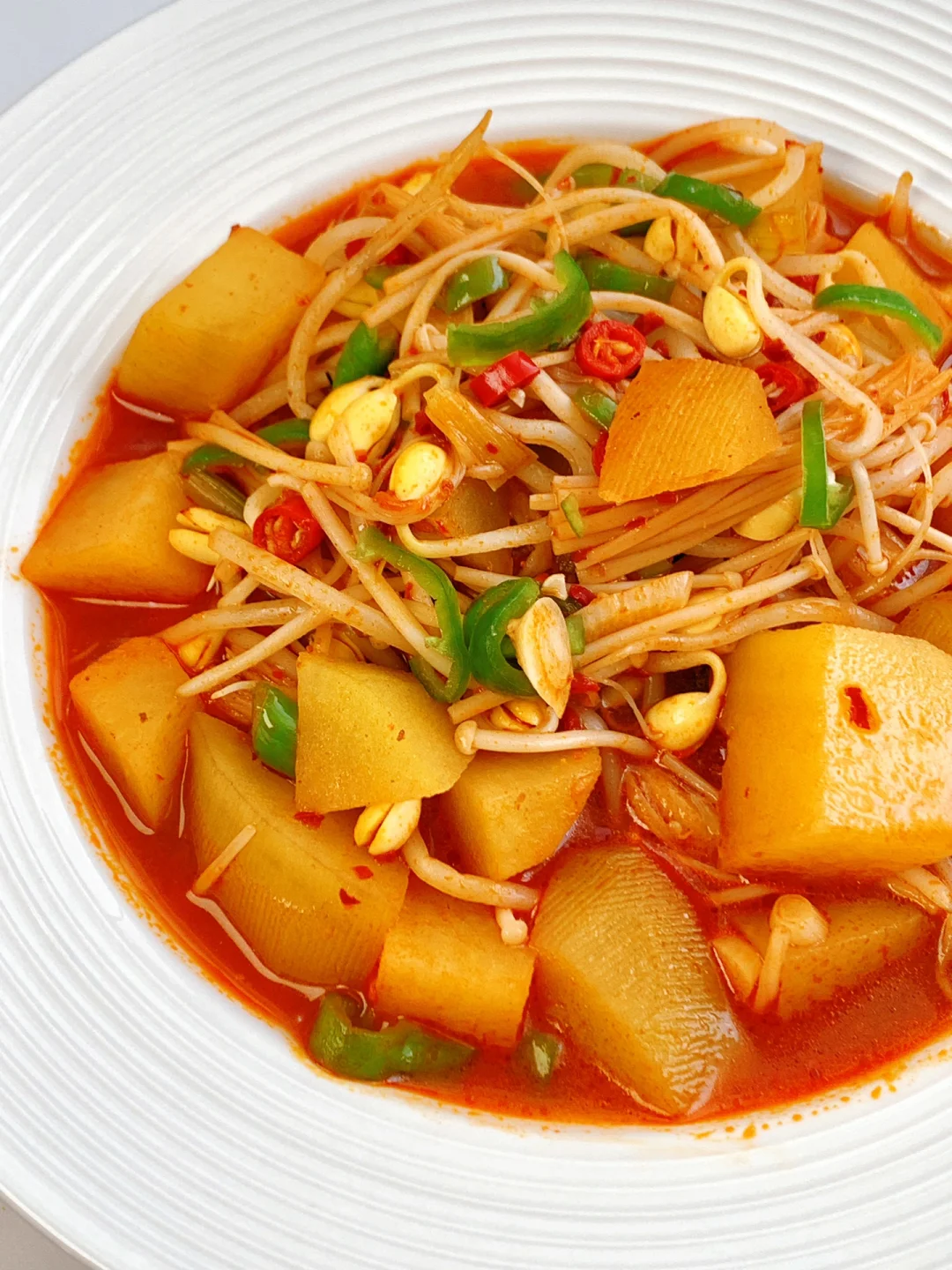 一人份食材:半个土豆,100g豆芽,一小把金针菇