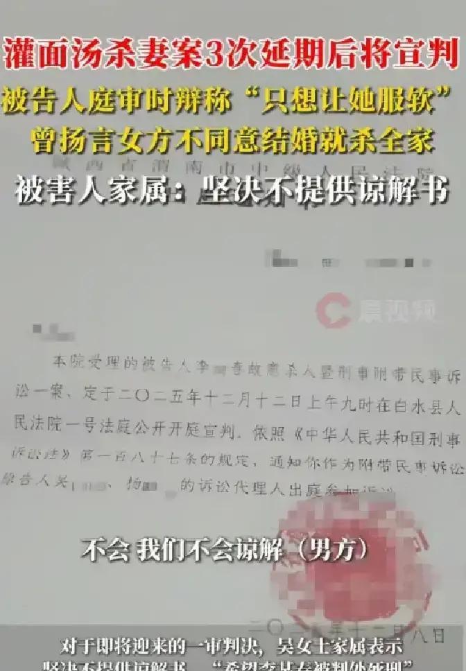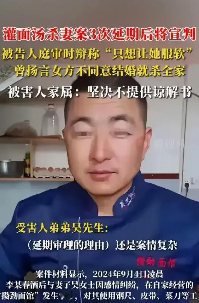 陕西渭南,男子和妻子发生争执,凌晨时分男子用皮带、钢尺、菜刀等殴打妻子,还将她按进六七十度的煮面锅里致死。案发后男子狡辩称,他没有家暴,只是喝多断片了想让妻子服个软。可据检测,男子血液酒精含量仅为37mg/100ml。 谁能想到,一家平日里热气腾腾、冒着面香的街边小面馆,竟然会在深夜变成死亡的现场? 陕西渭南白水县的“攒劲面馆”,平时门口排队的人络绎不绝,店里热腾腾的锅里冒着白气,让人闻着都觉得暖心。然而,9月4日凌晨发生的那场惨剧,让这家店每一寸空气都凝固成冰冷的杀意。 案发当晚,那口还留着余温的大锅不再是煮面用的,它成了丈夫李某手中的致命武器。 锅里的面汤,温度仍在六七十度左右,不会一下子把人皮肤撕裂,但足以让呼吸道遭到致命灼伤。吴女士被丈夫拖到这里后,头被按进滚烫的面汤里,她的身体承受着外部的热烫,同时还被迫吸入大量面汤,呼吸道被阻塞,最终窒息而亡。 在此之前,她身上已经有皮带抽打、钢尺猛击甚至菜刀挥舞留下的伤痕,这显然不是一场“酒后失手”的意外。 李某在法庭上极力把自己包装成喝醉了的“失手人”,甚至说自己“酒断片”,试图让暴行显得是无意识行为。但血液检测的数据直接戳破了他的谎言——体内酒精含量仅37mg/100ml,这点酒精根本不会让人丧失自控,也不可能让人完全忘记自己正在做什么。 他清楚地知道自己在用钢尺打人,清楚地把妻子拉到锅边,清楚地看着她在挣扎中慢慢失去生命。 造成这场悲剧的,不仅是那一刻的暴力,还有漫长岁月里对吴女士的精神摧残。她从小自卑胆怯,父亲两岁就去世,母亲改嫁,她在“没爹的孩子”这样的嘲讽声中长大。 性格里形成了一种即便受了委屈也不敢声张的习惯,而李某正是利用了这一点。 两人的婚姻从一开始就扭曲异常。吴家父母坚决反对这门婚事,他们早就看出李某不是好人。可李某用威胁逼迫吴女士嫁给他:“不嫁就杀你全家。”对于性格软弱、习惯忍让的吴女士来说,这句话像一道无形的枷锁,直接压在她的心头。 婚后,每当饭菜咸了、生意不顺,李某的拳头就会落下。邻居和食客曾多次听到吴女士的哭喊,但碍于“家务事外人勿插手”的观念,他们选择了沉默,而这种沉默在无形中纵容了暴行。 吴女士自己,为了不让父母担心,常年装作“好好生活”的样子,把所有苦难都吞在肚子里。 具有讽刺意味的是,就在惨案前不久的8月底,这段婚姻曾有过短暂的“平静”。 两人因为争吵差点离婚,在家人的劝和下,他们还出去旅游了两天。看似温馨的旅行,其实不过是暴风雨前的宁静,或者是李某为了掌控局面演的一出戏。旅行回来没几天,那口大锅就变成了吴女士生命的终结者。 案发当晚的时间线更让人心寒。凌晨3点,李某第一次给岳母打电话,语气轻描淡写地说“吵架了”;直到凌晨5点多,他才打第二通电话,冷冰冰地说“人不行了”。 这两个多小时里,吴女士经历了什么样的绝望?李某眼睁睁看着妻子在面汤中痛苦挣扎,却没有及时送医,这种漠视本身就是杀意的直接体现。 站在法庭上,李某依旧上演他的表演:一会儿说“我只是想吓她一下,让她服软”,一会儿又低声哀求“判我死刑吧”。 而他案发后甚至不愿向受害人家属真诚道歉,这种当庭的悲情表演,在吴母眼里,只是为了求生而做的假戏。 吴家人态度坚决:拒绝任何谅解,要求138万元的民事赔偿,唯一的诉求就是判李某死刑。至于留下的两个孩子,社会救助已经介入,保障他们的基本生活,这是这起悲剧中唯一的慰藉。 随着一审宣判临近,所有人都在关注白水县人民法院的裁决。 37mg的酒精掩盖不了他蓄意的恶意,六七十度的面汤也无法洗去残酷的杀机。 法律需要给那个在面汤中窒息的灵魂,最公正的交代。
