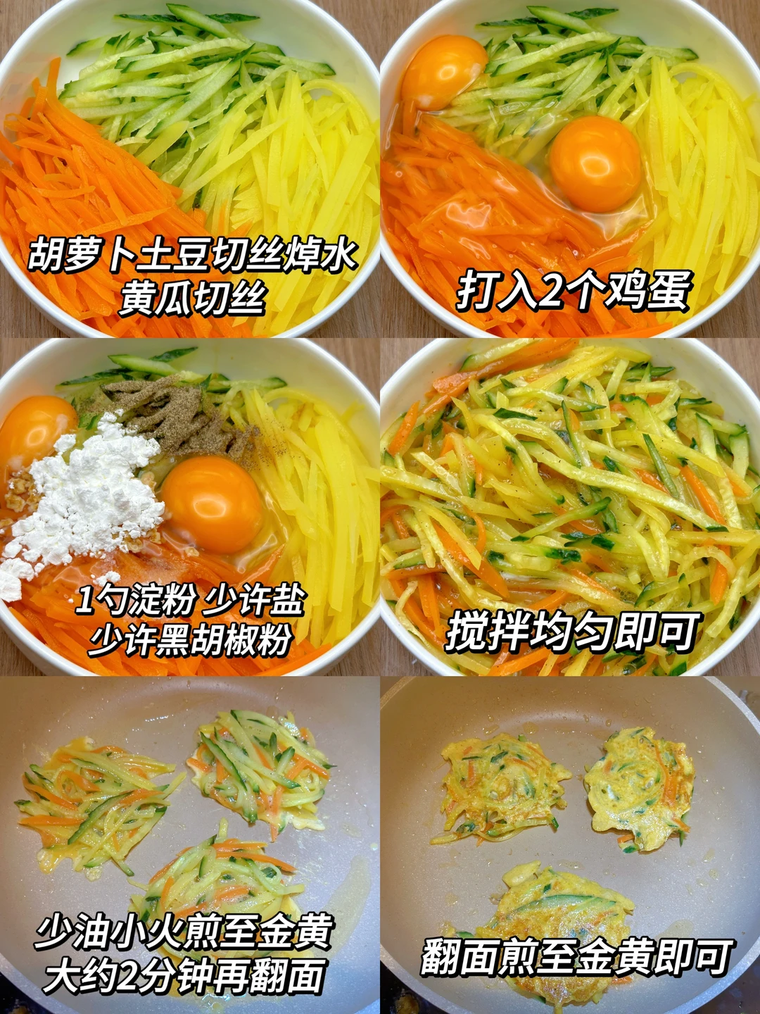 低卡胡萝卜青瓜土豆鸡蛋饼真的泰香了,外焦里嫩,低卡低脂,青瓜的清爽再加上浓郁的蛋香味,好吃又掉秤,饱腹还强,一大盘两人份也才200多大卡!一个饼才20大卡,吃两三个就有饱腹感了,[暗中观察R]减脂期的姐妹们可以放心炫~ [种草R]食材:鸡蛋、青瓜、胡萝卜、土豆(2~3人份) [种草R]做法:如图所示~ [斜眼R]更多的减脂餐在往期笔记~