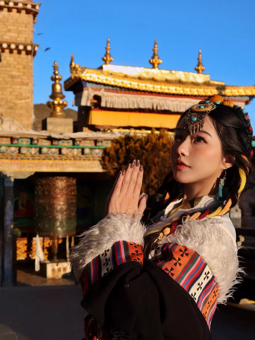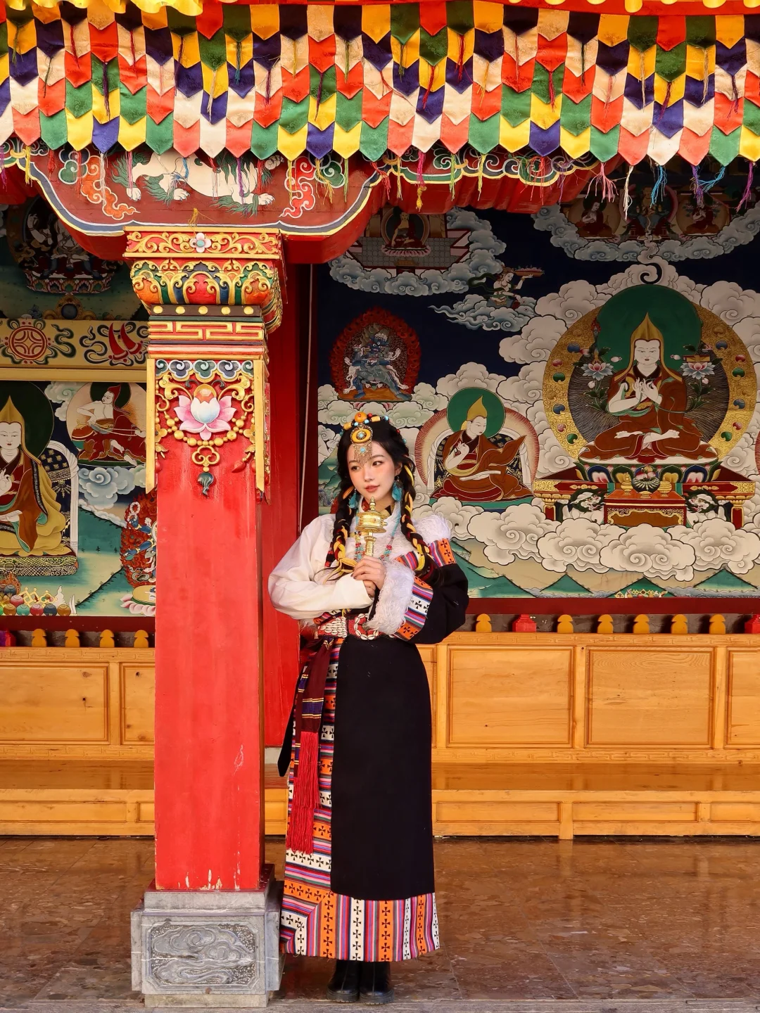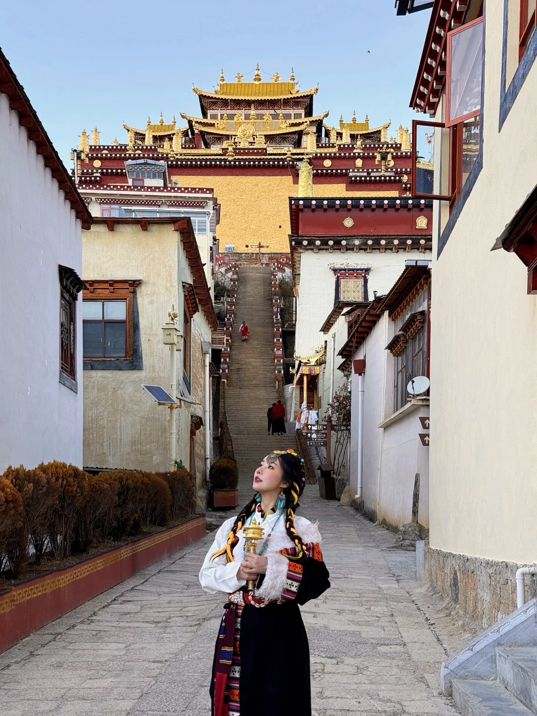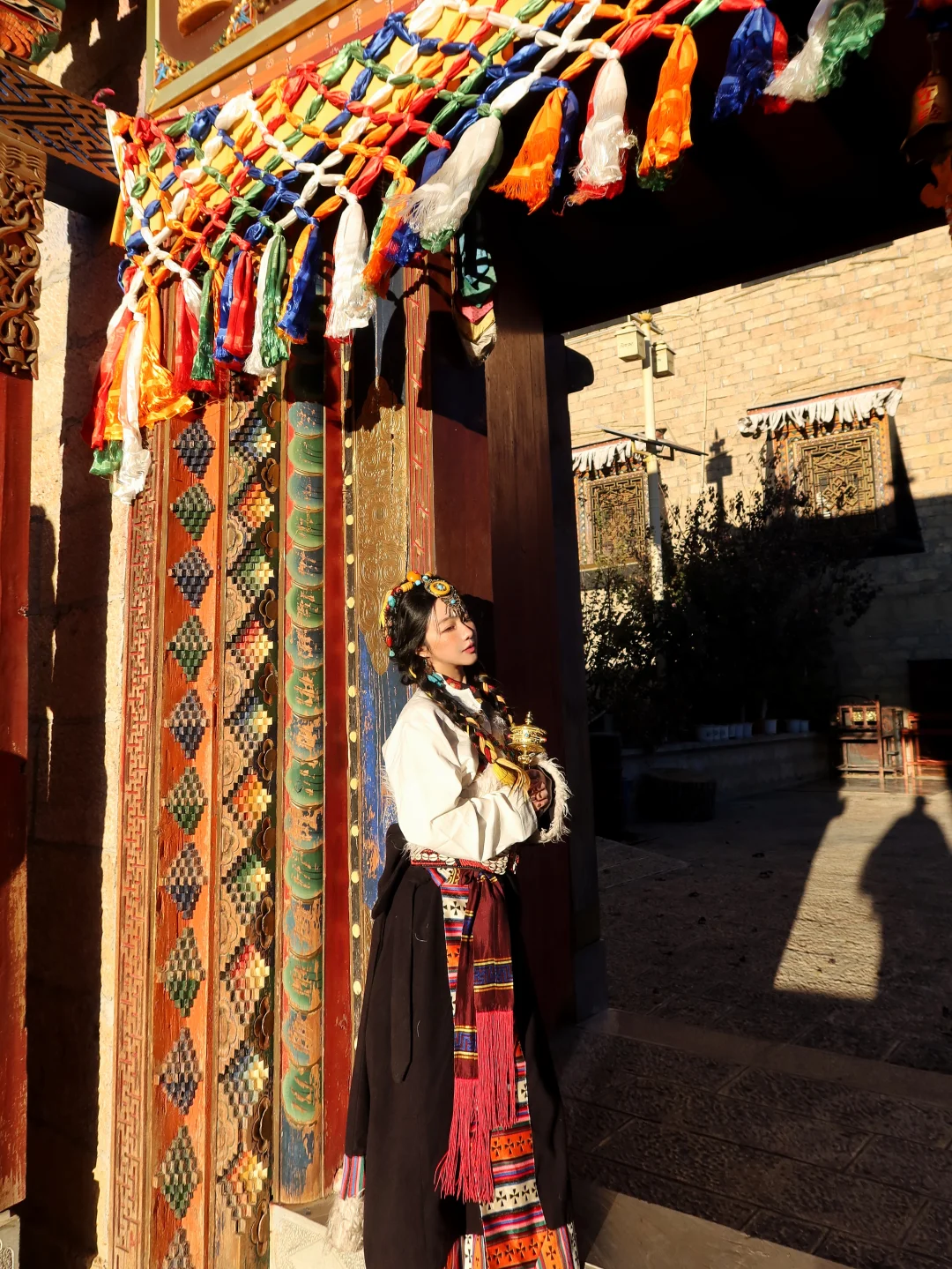 穿着藏服走在寺中,拍照氛围感直接拉