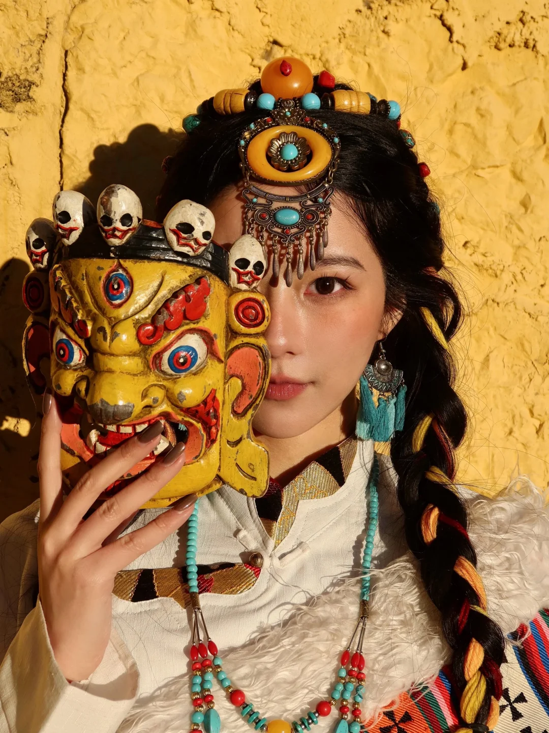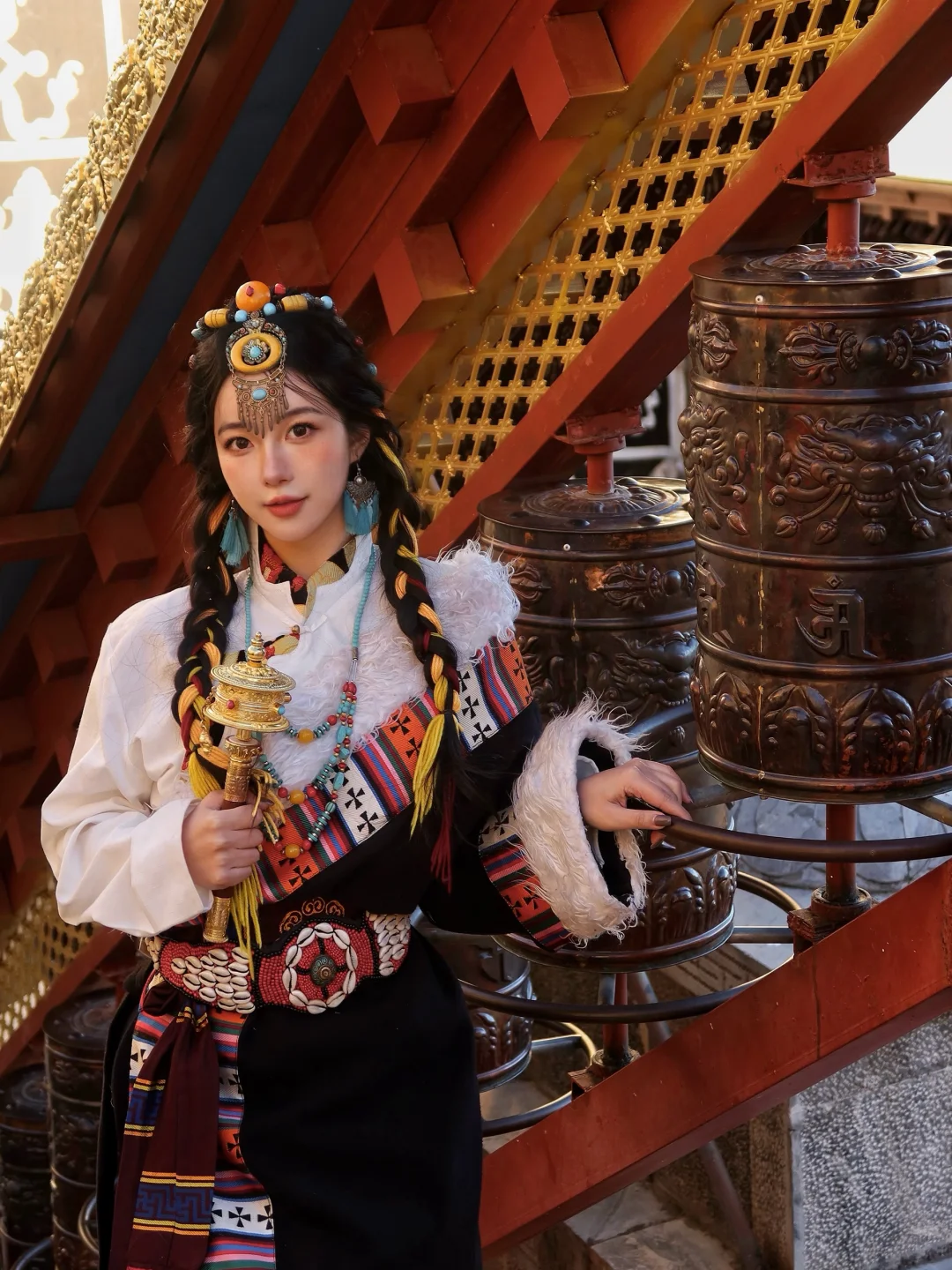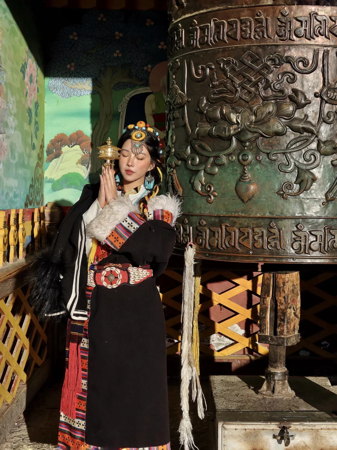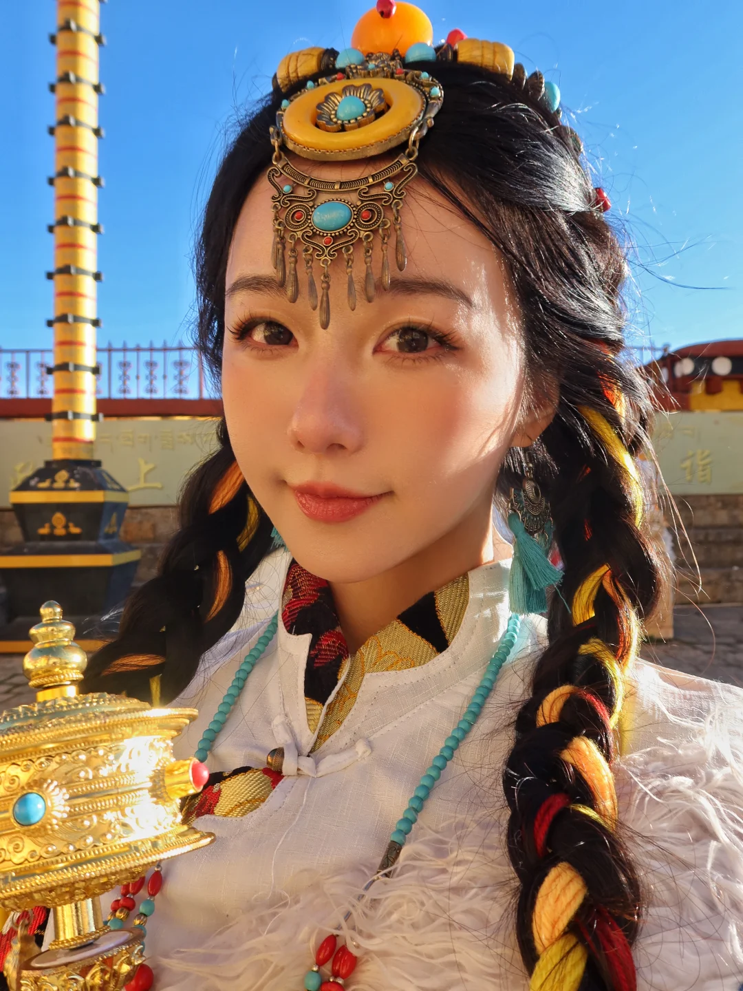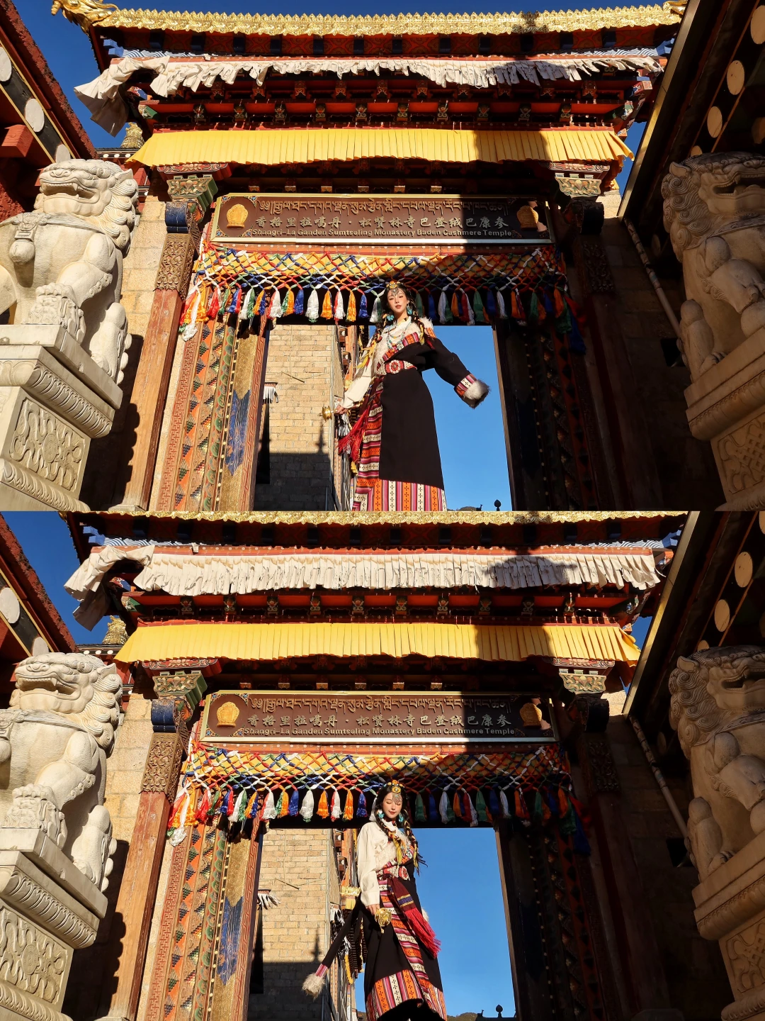 穿着藏服走在寺中,拍照氛围感直接拉