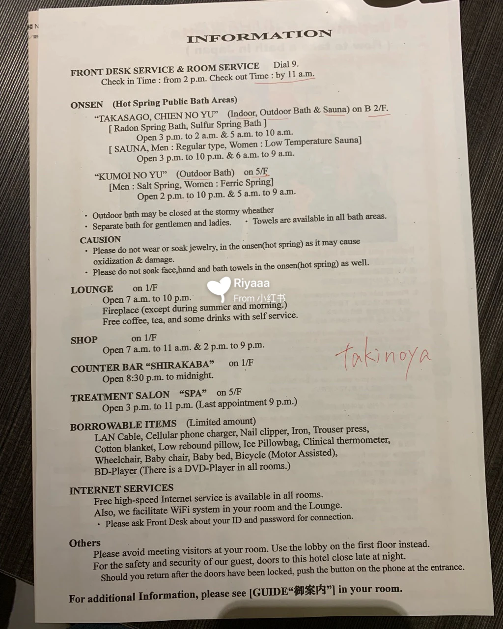 🔺公共温泉男女是分开来的而且不可以穿衣服进去泡,也不可以拍照!温泉分两部分,一个是顶楼的露天风吕云井之汤,一个是负二楼的地绿之汤,开放时间和注意事项见图9