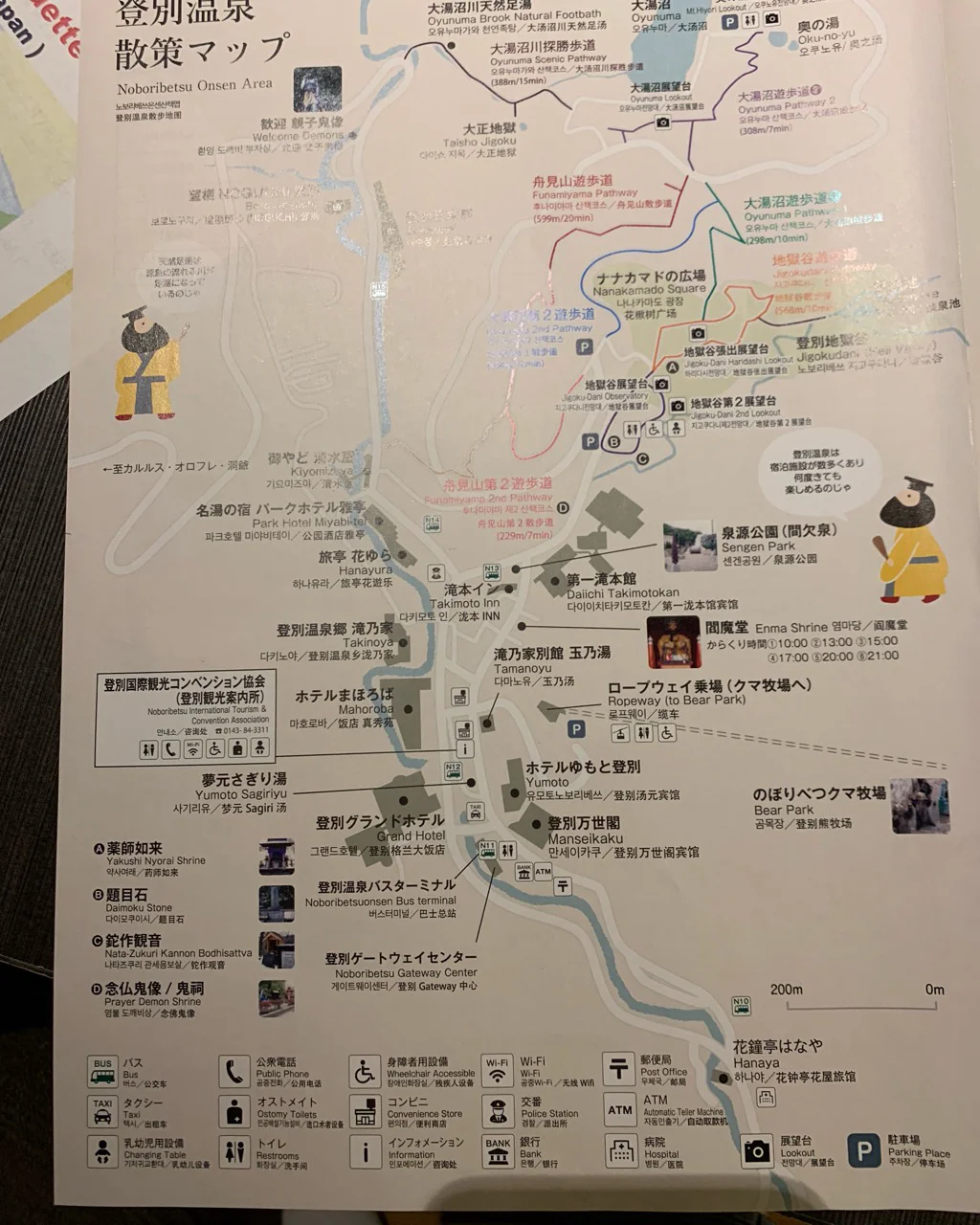 坐JR到登别站下车,登别很小,住一晚绰绰有余了~一出车站就可以看到一个很大的红鬼雕像👹,这里的人会祭祀鬼怪,再加上这里最有名的地狱谷,给人一种很诡异的感觉。从车站打车到温泉乡大概就十几分钟,一下车就一股浓浓的硫磺味扑面而来