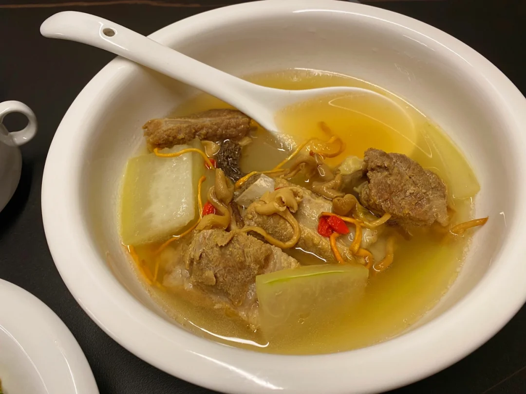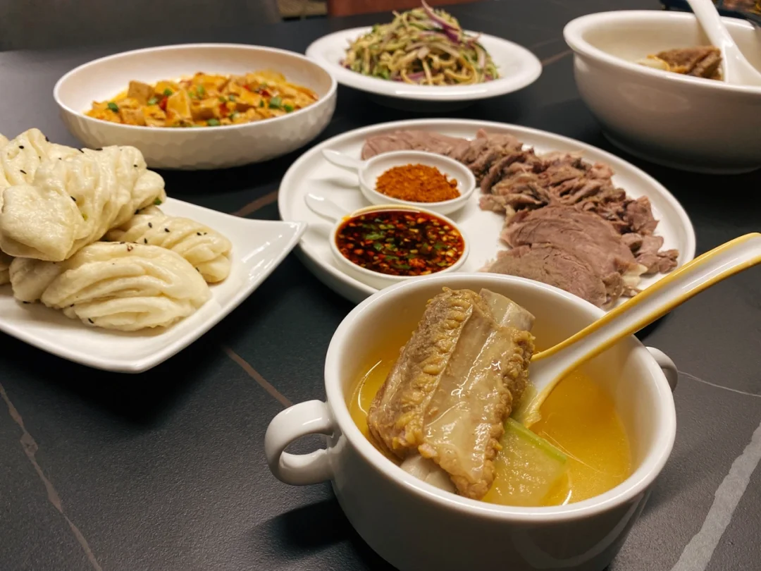 今天的晚餐: 🌈 排骨汤 🌈麻酱拌黄瓜豆腐丝 🌈手切羊肉 🌈麻婆豆腐 🌈葱油花卷~ …… 嗝……又吃撑了[笑哭R]