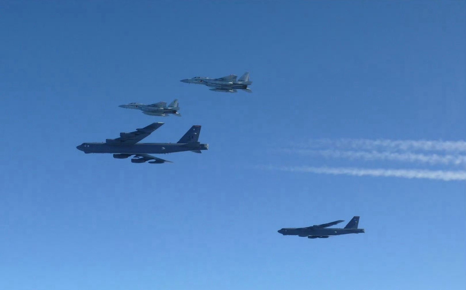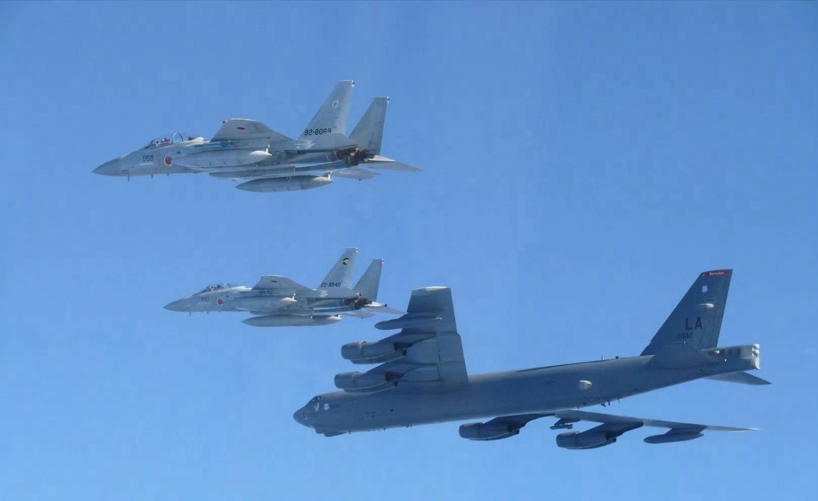 前天,中俄的战略轰炸机在战斗机的护航下,在日本海空域联合巡航。今天日本照葫芦画瓢,叫来了美国父亲的B-52轰炸机,也在日本海空域巡航。不是,战略轰炸机在自己家门口晃悠,管P用啊