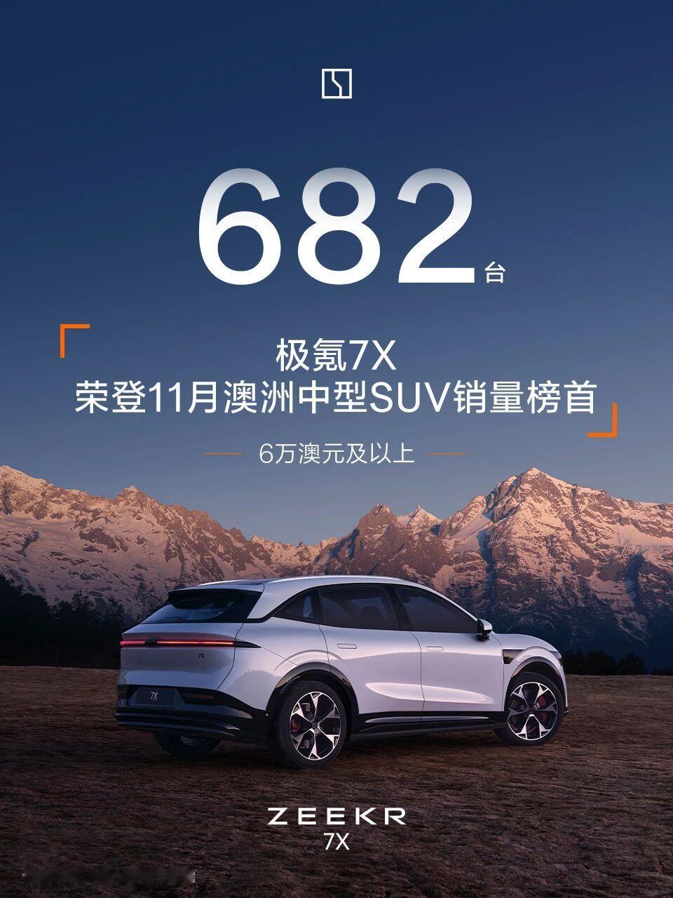 恭喜极氪全球市场再创佳绩 极氪7X✅香港9-11月中型SUV累计销冠✅澳洲11月6万澳元及以上中型SUV销冠大v聊车新能源汽车
