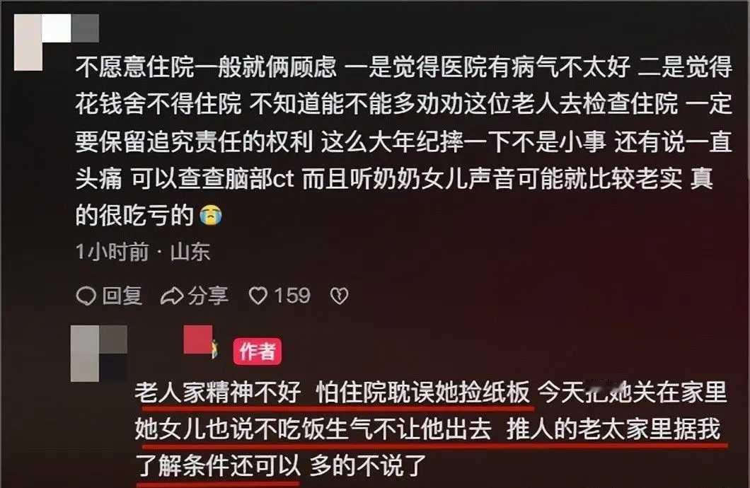 浙江温州街头的一幕,让无数网友怒不可遏:一位先天手部残疾、无法正常说话的老奶奶,为守护价值仅8-10元的纸箱,被同行大妈狠心推倒,后背重重撞在路沿石上。而老人拒绝住院的原因,更让人心疼不已。 12月10日上午,温州一家杂货店店主按惯例,将近20个捆扎好的纸箱留给常来捡废品的残障老奶奶。老人用自制小推车先运走部分,用石块标记剩余纸箱后折返搬运,没想到短短五分钟内,意外突生。 一位骑电动车的红衣大妈路过,见纸箱堆放路边,未加确认便认定是"无主物",径直往车上搬。赶回的老奶奶急得连连"哎哎"呼喊,用仅能活动的手慌乱比划,试图说明纸箱归属,可大妈完全无视,加快动作准备撤离。 腿脚不便的老人踉跄追赶,好不容易抓住电瓶车扶手,却被大妈不耐烦地一把推开。失去重心的老人向后仰倒,后背结结实实砸在台阶上,三次尝试起身都未能成功,只能趴在地上痛苦哼哼,腿部迅速红肿一片。 万幸的是,店主及时冲出拉住大妈,围观群众迅速报警并呼叫救护车。经检查,老人确诊为背部软组织挫伤,虽无骨折和内脏损伤,但持续喊头痛,医生建议留院观察一周。可让人揪心的是,老人坚决拒绝住院,甚至被女儿关在家中时还闹脾气不吃饭——她满心惦记着没捡完的废品,怕耽误挣钱。 据悉,涉事大妈平时也靠捡废品补贴家用,当天本是去菜市场买菜,见纸箱后起了贪念。经警方两小时批评教育,她仅支付了600元检查费,未作任何道歉,额外赔偿也未达成。更让人愤慨的是,打听得知大妈家境并不差,却为几元钱的纸箱,对弱势老人动手。 事件曝光后,网友纷纷谴责大妈"为小利失底线",同时为朵朵一家主动留纸箱的善意、店主和路人挺身而出的举动点赞。有网友直言:"捡废品可能是别人的生存底线,不该伸手抢夺",也有人提醒家属密切观察老人状况,避免后续出现隐性损伤。 目前,老人仍在家中休养,头痛症状尚未缓解。朵朵表示,若后续老人身体出现异常,会继续通过法律途径维护其权益。警方也明确,大妈的行为已违反《治安管理处罚法》,若双方调解不成,家属可提起民事诉讼主张侵权赔偿。 一场8元纸箱引发的纠纷,照见了人心善恶:有人对弱者心怀悲悯,用微光汇聚温暖;有人却被贪念裹挟,践踏公序良俗。希望这600元赔偿能让涉事大妈真正醒悟,更愿所有困境中的老人都能被温柔以待——善良从不是理所当然,而是人与人之间最珍贵的羁绊。