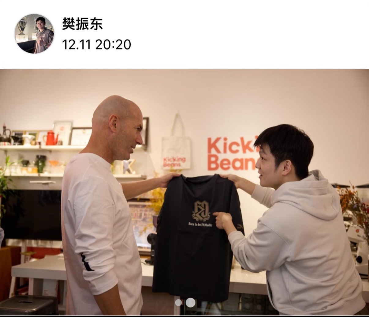 樊振东ins更新,和齐达内互送签名球衣樊振东齐达内互赠礼物