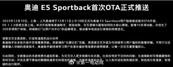奥迪E5 Sportback搭载的AUDI OS系统首次OTA,新增10多项功能,涉及奥迪助手、视觉动效、交互逻辑与副驾协同四大核心领域,“智驾”方面此前说是和Momenta共同联合打造,所以这款车应该也是R6飞轮大模型,有没有体验过的效果如何? 奥迪e5sportback新能源汽车