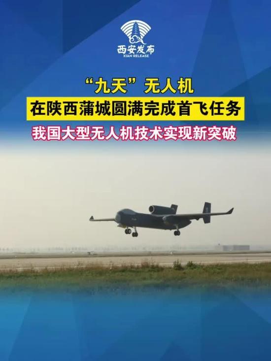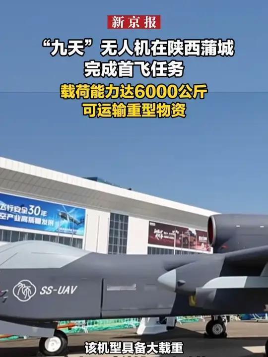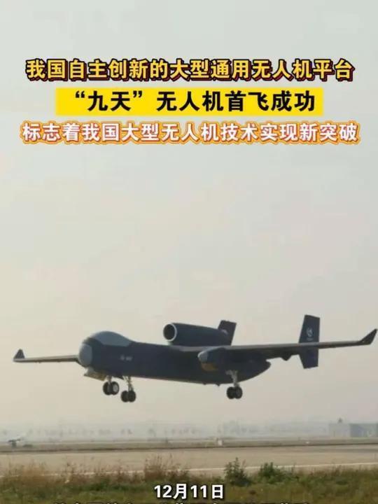 12月12日,据新华社报道,12月11日,中国🇨🇳航空工业集团有限公司获悉,“九天”无人机在陕西省蒲城圆满完成首飞任务。 作为我国自主创新大型通用无人机平台,该机型采用“通用平台十模块化任务载荷”设计理念,依托自主集或技术创新,具备大载量、高升限、宽速域、短起降等核心优势。 “九天”无人机机长16.35米,翼展25米,最大起飞重量16吨,载荷能力达到6吨,航程12个小时,转场航程7000公里,携带200架巡航飞弹,可携带百架无人机,性能指标位居同类型产品之首,号称空中无人机航母。 评论,“九天”无人机首飞,标志着该无人机即将开始大规模量产了,也意味着距离装备部队只有一步之遥。 “九天”无人机彻底改变了空中格局,成为世界上头号无人机杀手。[赞][赞][赞][赞][赞][赞][赞]