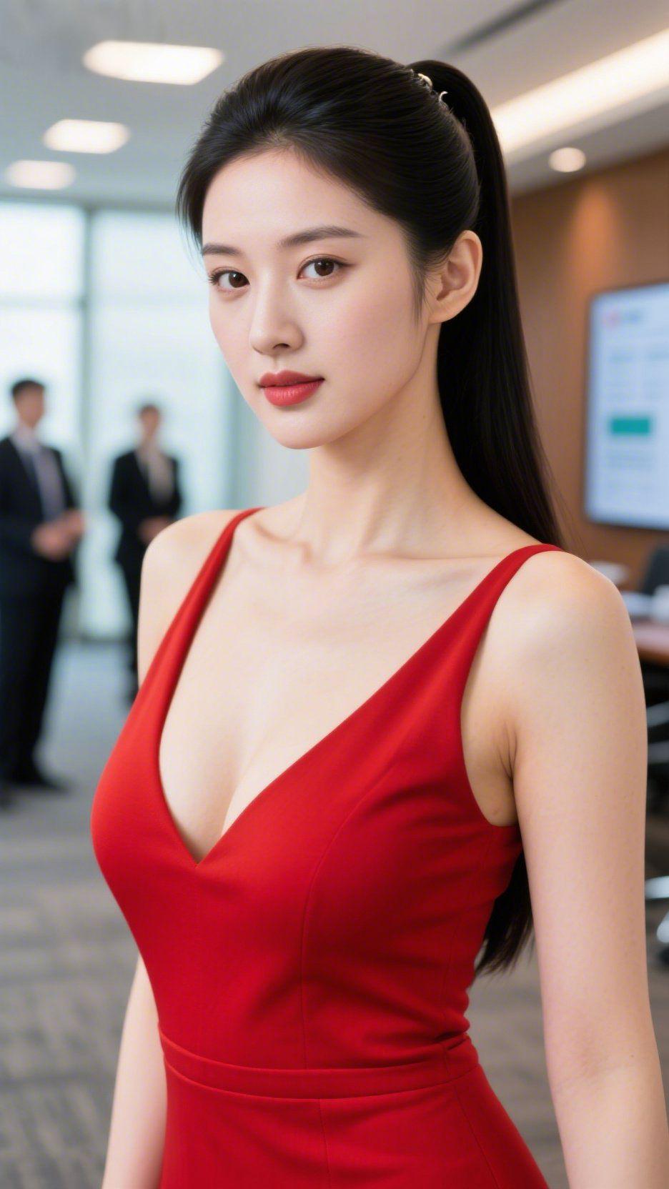 《职场中的红韵底气》 写字楼的清透光线里,一抹正红破开了日常的沉闷——高马尾束得利落,发梢带着干脆的劲儿,像职场节奏里的利落节拍。 裙装的简洁线条衬出舒展的肩背,没有多余装饰,却像一份逻辑清晰的方案,醒目又妥帖。背景里的办公轮廓,更让这抹红成了专业感的注脚:不是刻意的抢眼,是藏在细节里的自信,像常握在手中的笔,好看,更有稳稳的分量。 原来职场里的气场从不是张扬,是把笃定揉进衣着,让每一刻都带着从容的力量。 职场通勤风 干练气质穿搭