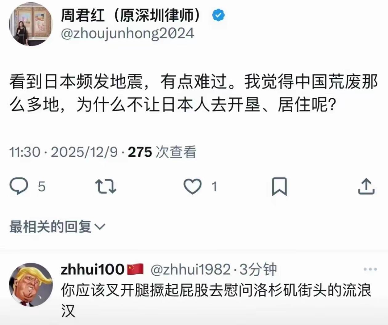 子不嫌母丑!世间居然有这样无耻之人! 看了这玩意的写的话简直怒火中烧,虽然类似的发文不是第一次见,这样的人她不是第一个。 但是我依然忍不住愤怒和极度反感。我很难想象一个人对国家民族如此的背叛和诅咒。 我不信国家会去主动迫害你,如果你是守纪守法之人,没有非分之想没有害人之心。 如果只有私欲意图为所欲为,那咱们这确实不是你妄想的国度。 居然盼着国家乱蒙混过关好回来团聚,完全将个人利益私情置于国家和民族利益之上!其心可诛! 为曾经给我们带来无穷苦难的日本叫屈甚至想要咱们把自己的土地拱手送人,更是意图引狼入室认贼作父!其言可耻! 我实不知这样厚颜无耻无德之人怎有脸面苟活于天地间!且还如此狗吠犬声! 无耻的人啊 无耻行为 无耻没下线 对于叛徒,大家有何看法?
