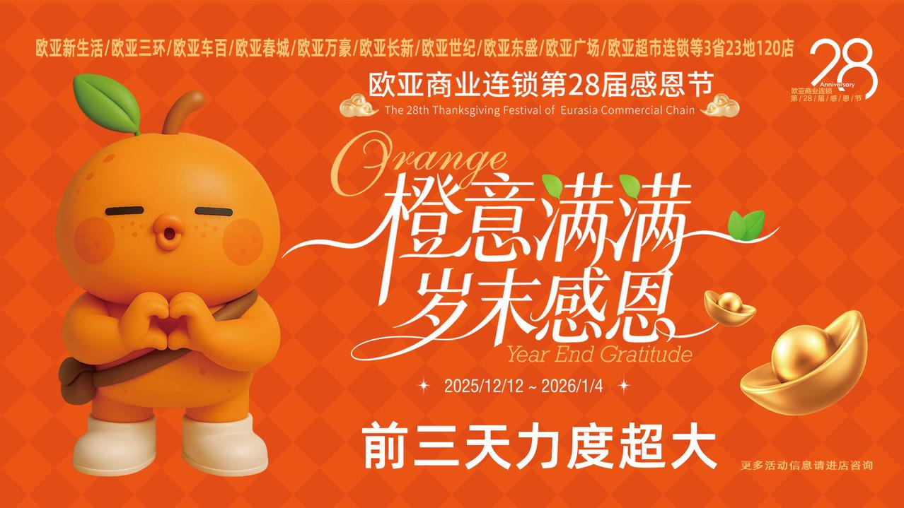12月12日起,欧亚超市连锁120店联袂启动第28届感恩节!