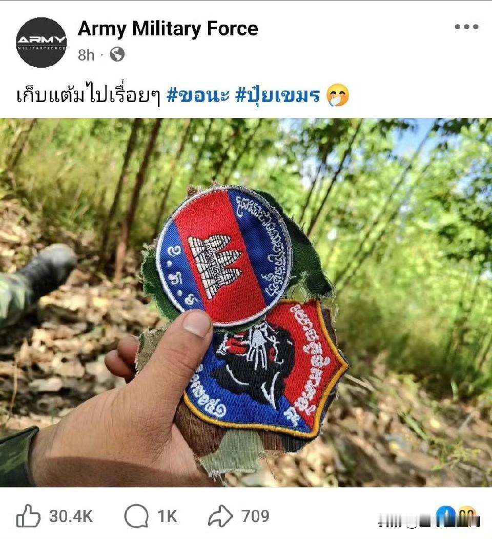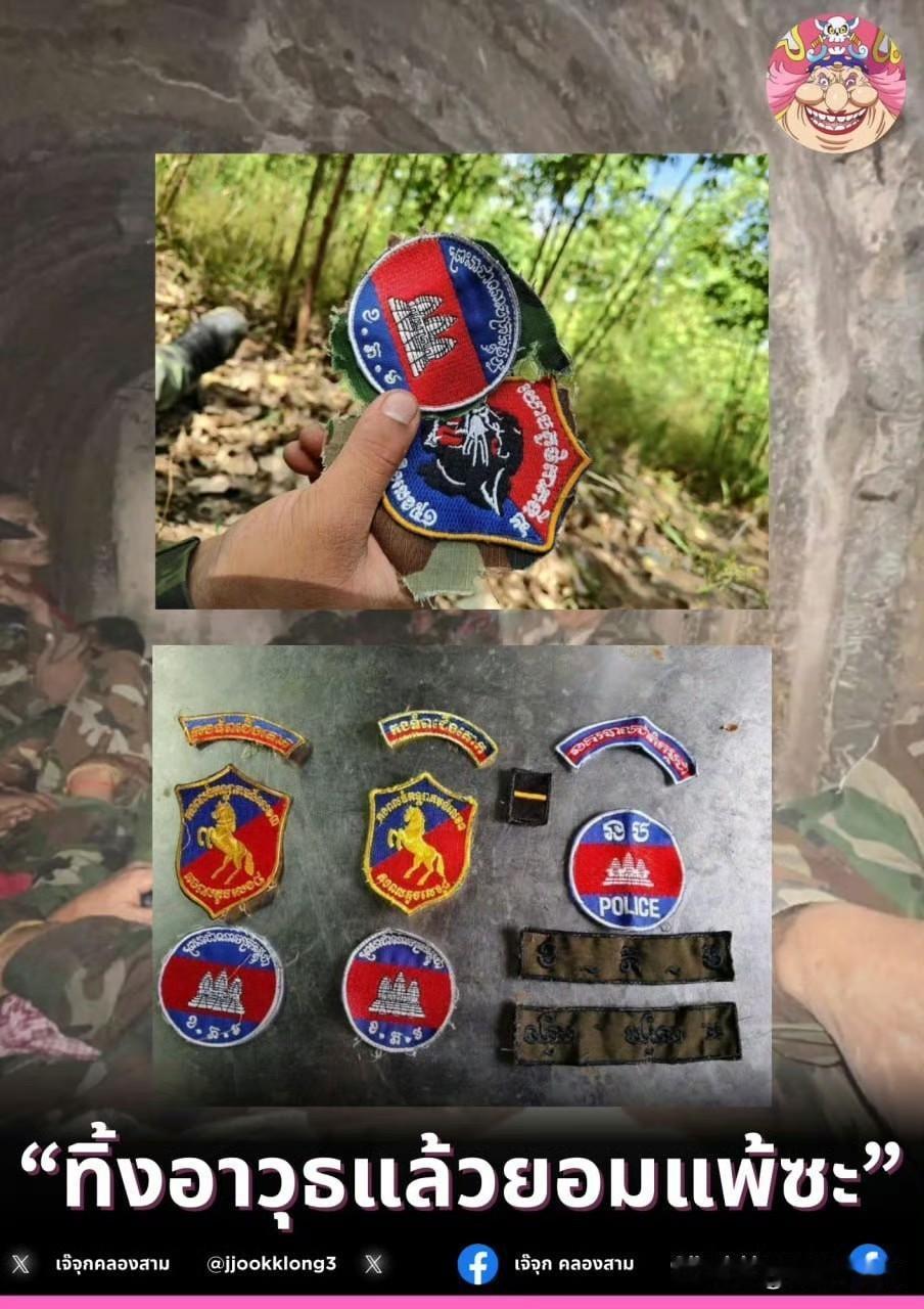 泰军收集了战死柬埔寨士兵的臂章。泰柬冲突