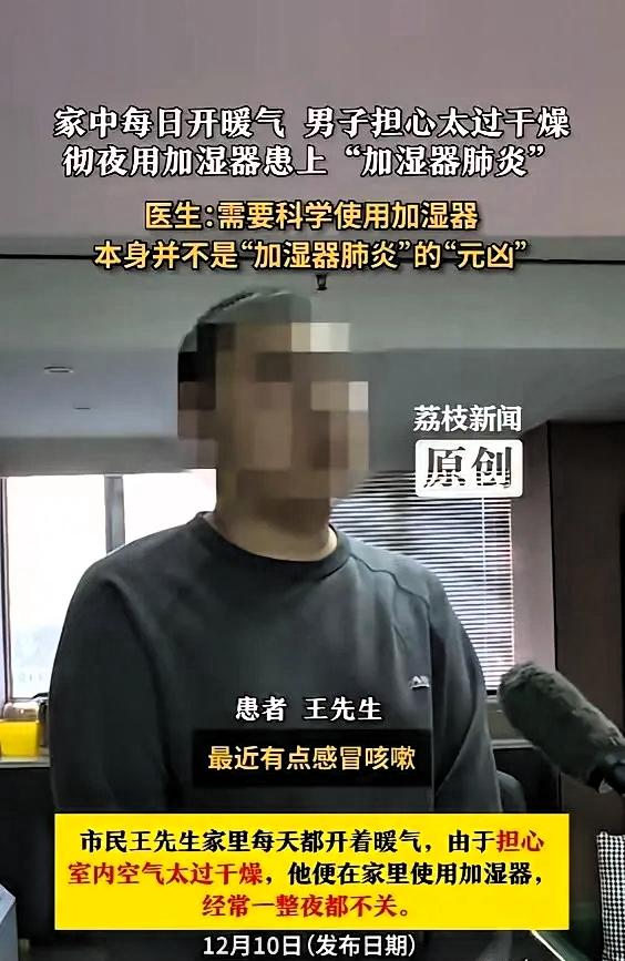 悲剧还是发生了!近日,江苏,一男子因家中每天开暖气,担心空气太干燥 买了加湿器后,几乎每天都开着没断过电,水箱里的水用完就直接续上,从来没想着要清理。 起初他只是偶尔咳嗽,以为是换季着凉,没太当回事,直到后来胸闷的症状越来越明显,晚上躺下来连呼吸都不顺畅,这才赶紧去医院检查。 检查结果出来后他彻底懵了,自己竟然患上了“加湿器肺炎”,而致病的根源,就是那台长期不清理的加湿器。 原来,长时间不清洗的加湿器水箱,会成为霉菌和细菌滋生的温床。这些看不见的有害物质,会随着加湿器喷出的水雾飘散在空气中,被人不知不觉吸入肺部,时间一长就引发了肺部感染。 医生特别提醒,加湿器并不是插电就能用的“懒人神器”,使用时的卫生细节一定要重视。水箱需要定期用白醋或消毒液擦洗,去除残留的水垢和细菌;换水时优先选择纯净水,减少细菌滋生的条件;同时也不要长时间不间断使用,保持室内适度湿度即可。 很多人冬天都离不开加湿器,却偏偏忽略了清洁这个关键步骤。本是为了提升生活舒适度的小家电,稍不注意就变成了伤害健康的隐患。 说到底,生活中的健康风险,往往就藏在这些容易被忽视的小细节里。