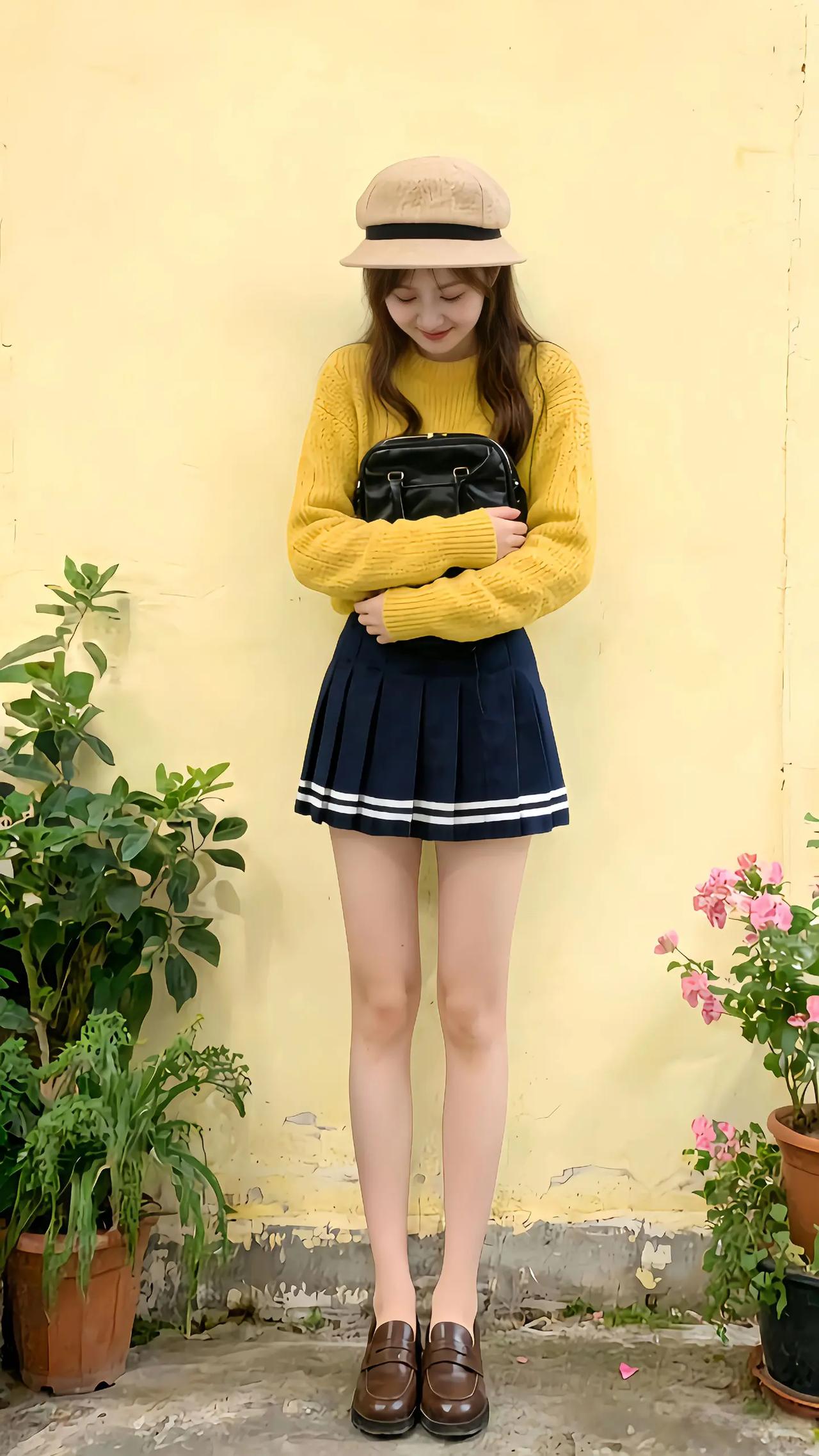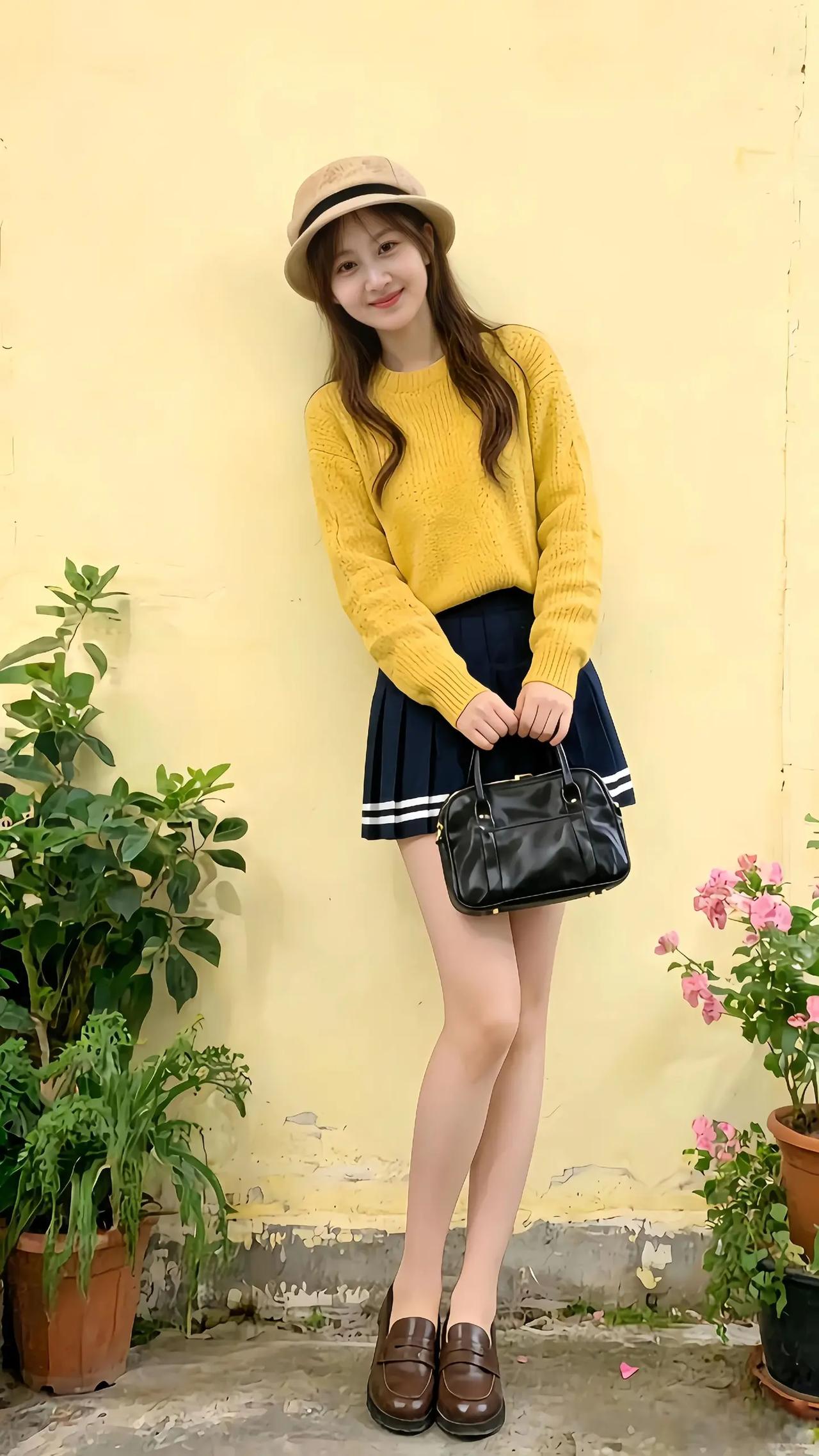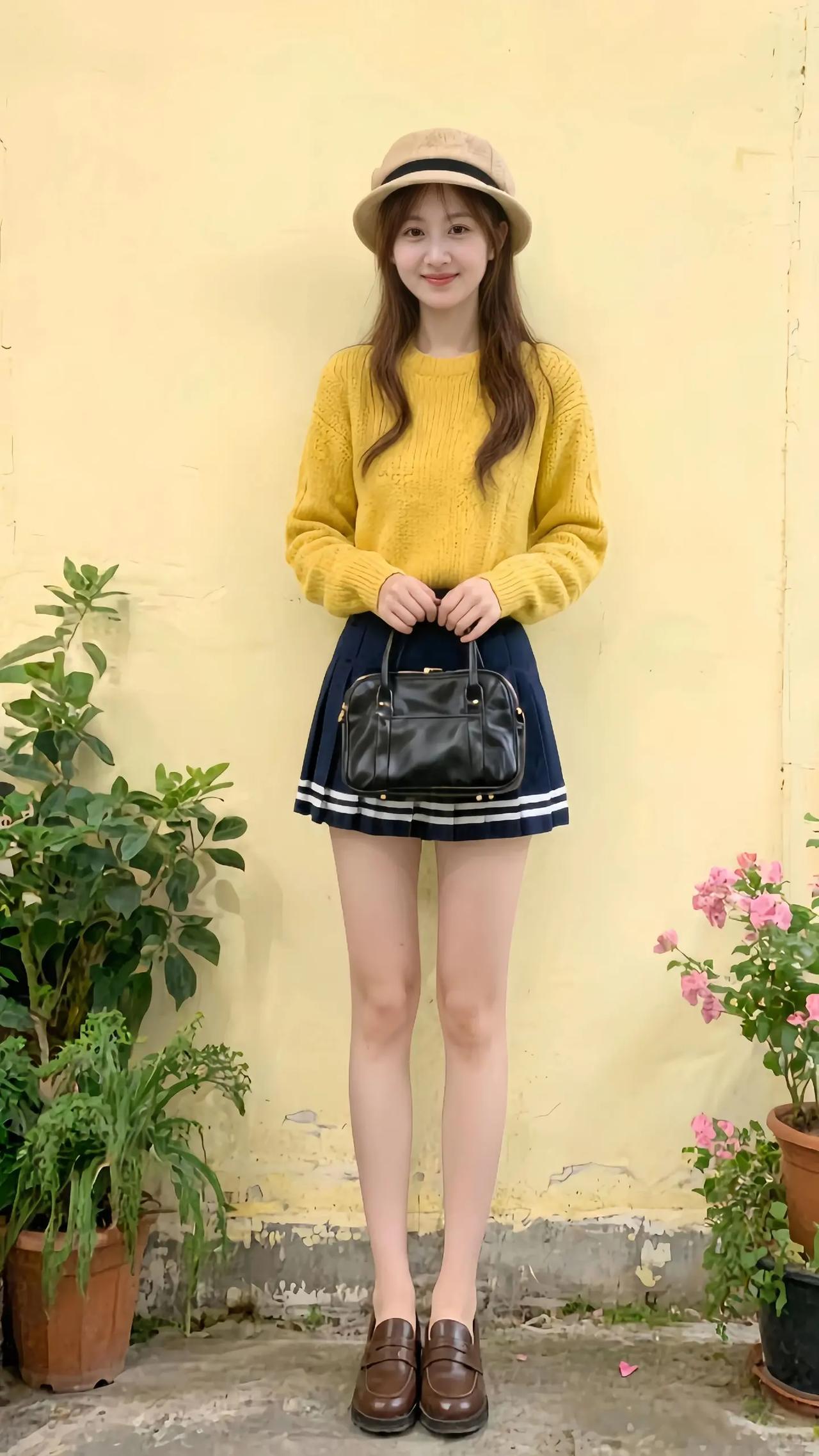 女人如何穿出含蓄的性感? 复古风穿搭指南:黄色毛衣+海军裙+棕色皮鞋,搭配米色帽子,尽显文艺气息。