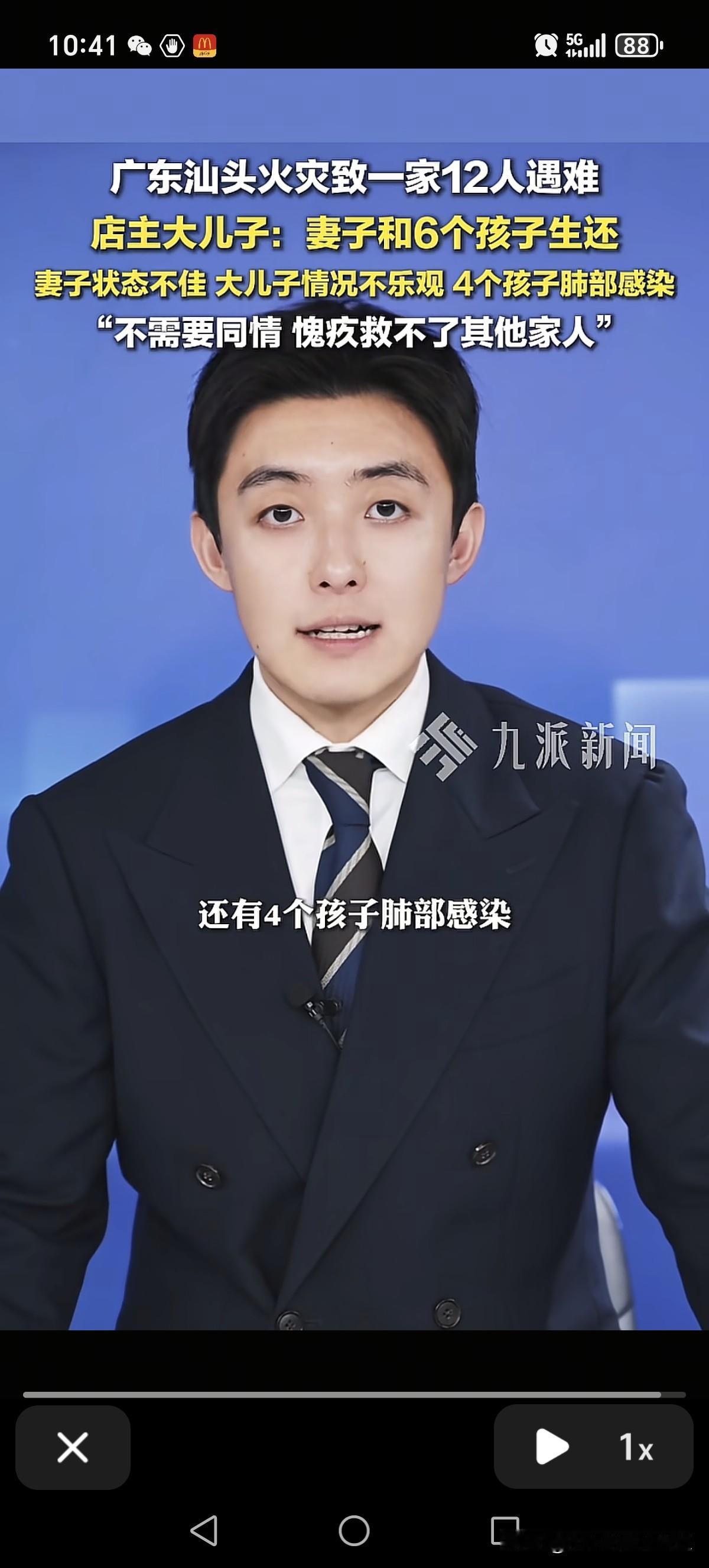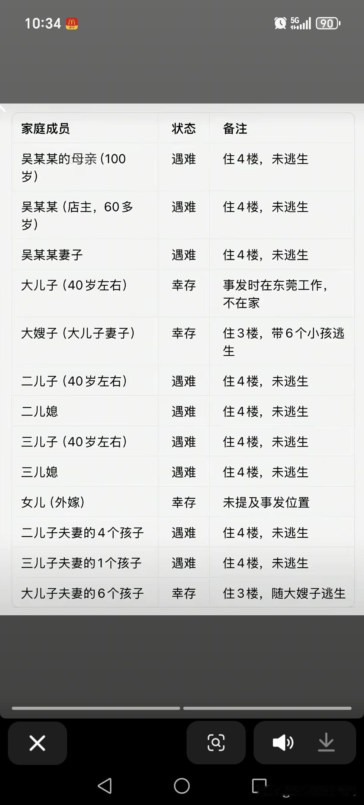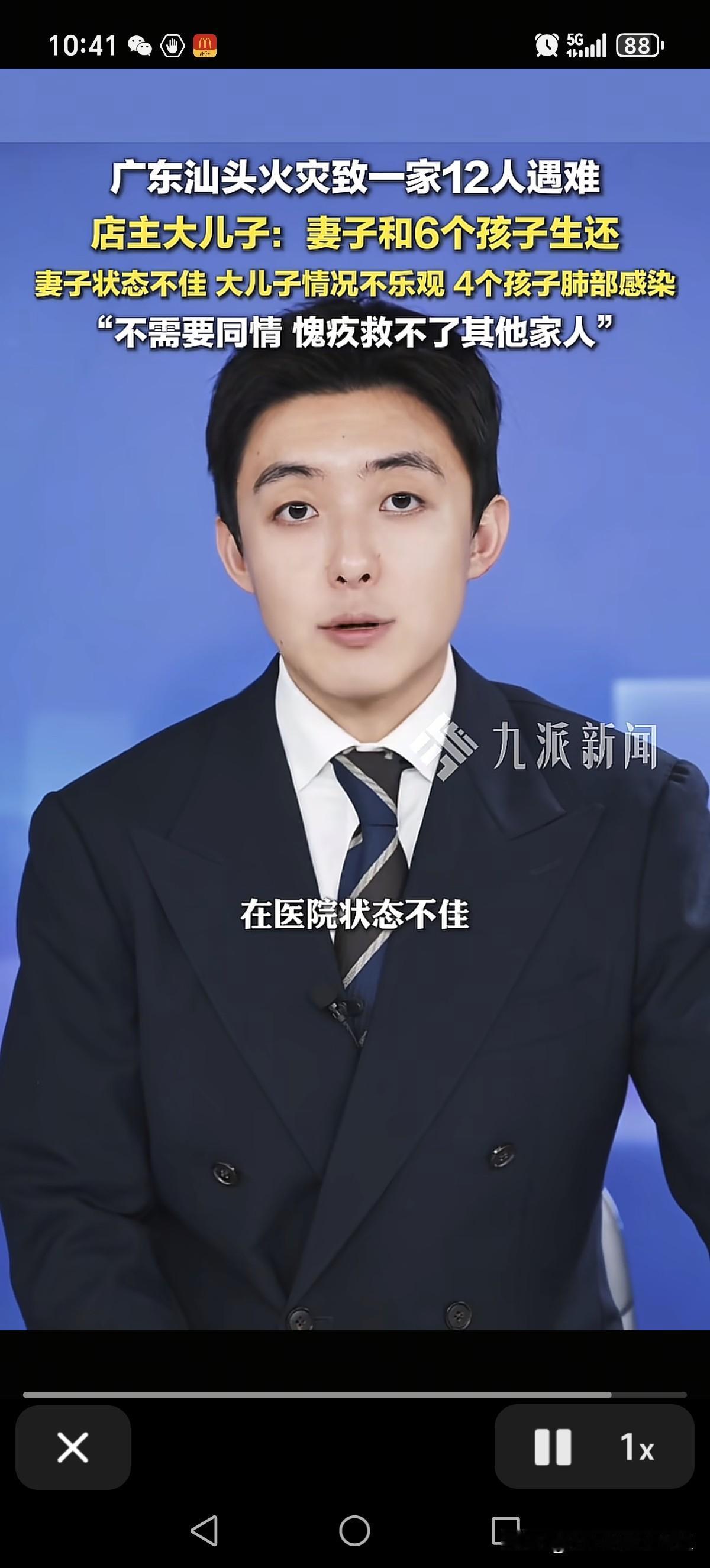汕头五金铺火灾致12人遇难,灾后房子内部曝光,家具是完整的,植物也是存活的,但是内外被熏得漆黑,这说明当时的火势没有烧到楼上,这12人死亡,估计都是被熏死的。 这位大哥跟两个弟弟从事不同的行业,大哥做机械包装的,弟弟从事五金,主打水管、电机、电泵之类的,当时大哥他不在家所以幸免于难。 火灾时,大嫂真的很厉害,她只有两只手,所以只能抱2个小儿子,让3个小女儿戴上口罩,拿着湿毛巾躲到阳台等待救缓,她一手拎一个儿子,扯着10岁大女儿逃出来,等她出来把小的2个孩子放到安全地带后,再返回救那3个大一点的女儿,但被邻居拦住了,而当时消防员也到了,所以救援交给了消防员,消防员是直接把防队盗网剪断了救出那三个女儿的。 现在大嫂和6个孩子都躺在医院,大嫂状态不太好,大儿子情况不乐观,4个孩子的肺部感染。 从大哥拍摄曝光屋内的视频,可以得知,当时火还没有烧到3楼,但因为五金店铺,燃烧的那些电机塑料铜线产生了大量有毒的浓烟,所以人根本就看不到,甚至呼吸不了,逃生就更难了,大街那边的正门,因为是1楼着火,所以逃生口就被堵死,本来楼顶的天台是互通的,可以跑到另外一幢逃生,当时救火的邻居也提醒了他们,但是他们居然把这个给锁死了,他们说开不了,所以4楼全军覆没。 二嫂他们是因为在二街那边侧门出来的,只能说这个二嫂真的非常机智,满屋都是毒烟情况下迟疑一秒人就没了,她知道让孩子戴上口罩和湿毛巾捂住,在阳台等待救援,真的很明智。 几兄弟不分家,一大家子都住在一起,证明感情都很好,大嫂经历这种场面,还失去了12位亲人肯定很难接受,在外人看来都很难受,也很惋惜。 这件事情也提醒我们,家里备防毒面罩很有必要,还有就算是装防盗网一定要多留活动的逃生口,天台的门千万不能锁,这些都是生命通道!