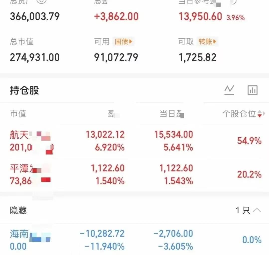 大曾子今天又红了!昨天追了点航天,今天商业航天板块再次爆发,动力拉高炸板,航天也是低开高走,后排小弟不断补涨,再升成了连板龙。大曾子果断割了海南发展,航天选择格局,还买了点老龙平潭,平潭合富这两人是轮着来,因为有监管在身,都不敢拉涨停,感觉合富上涨的空间不大了,平潭蓄势待发,大家更看好谁呢?