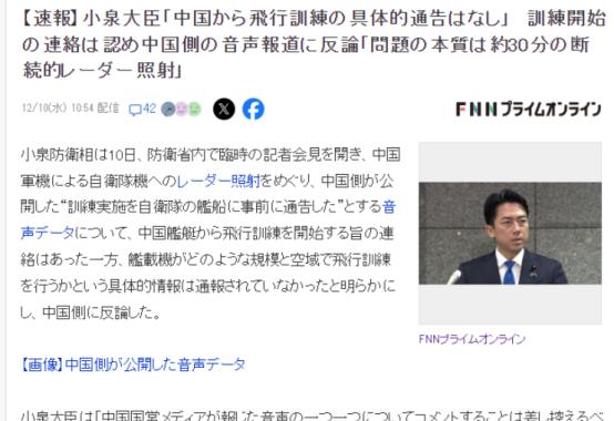 12月10日上午,针对中方公布的录音,日本防卫相小泉进次郎召开新闻发布会,小泉进