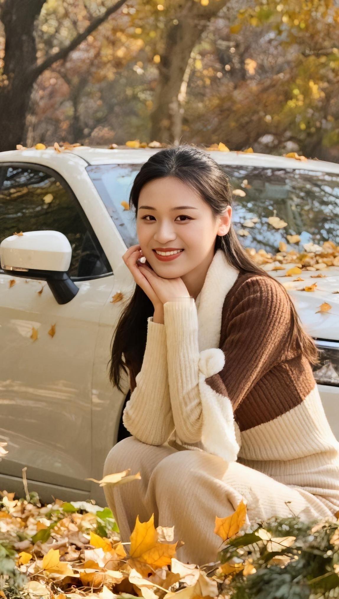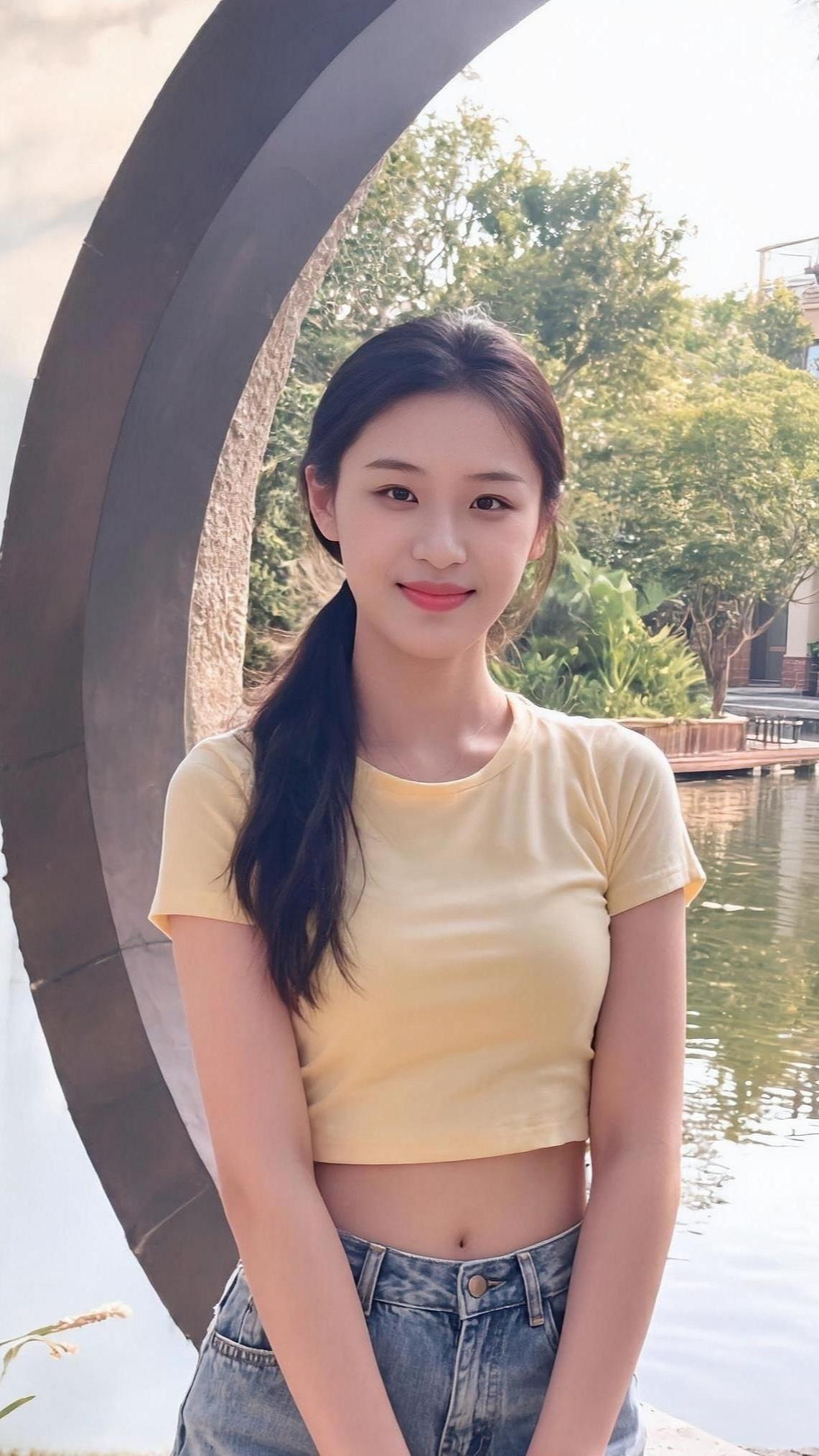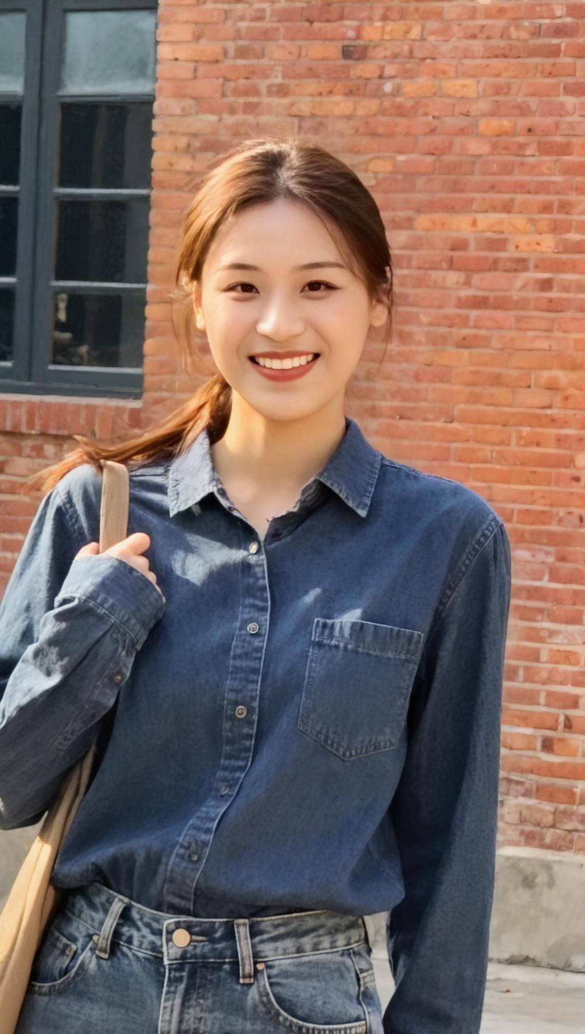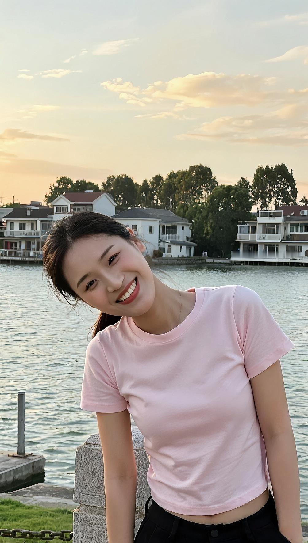 墨领裁风衬晓霞, 青衿挽步踏尘沙。 一杯轻握温寒色, 半缕残阳落鬓华。 城郭遥连烟树外, 衣衫闲惹晚风斜。 悠然坐看流云去, 漫把清欢寄盏茶。 黑色高领接住落日的余温 牛仔裤碾过街边的光斑 咖啡杯在指尖转了个圈 城市的轮廓软在暮色里 发髻挽住一缕晚风 蹲下来时 影子也跟着蜷成温柔的形状 杯沿的热气 飘向 被夕阳揉碎的天际线 初染梢头淡作金 半卷诗笺