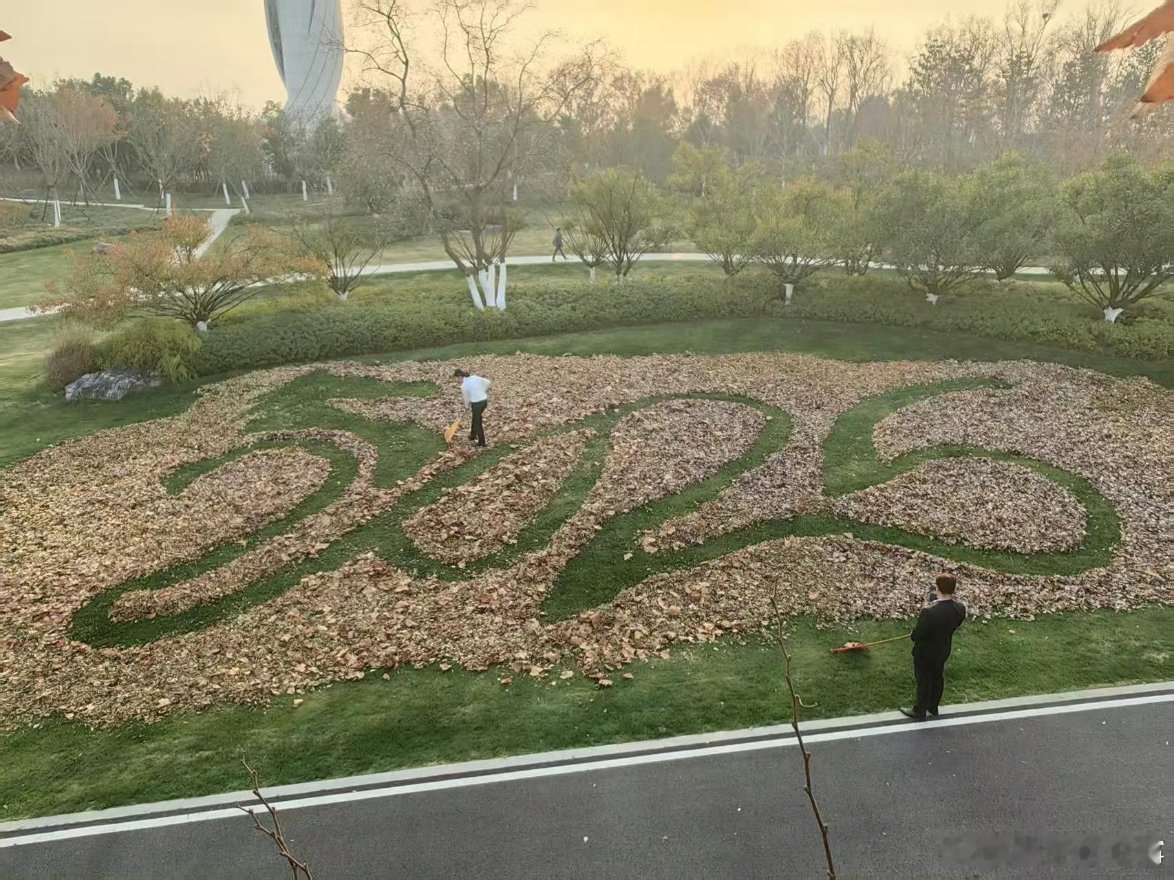【合肥骆岗公园解锁了冬日创意新景】当冬日的寒风将骆岗公园的色叶林染上斑斓,园区的落叶便有了新的使命。近日,在骆岗公园信标台东侧的草坪上,绿化工作人员化身“大地艺术家”,用园区内收集的各色落叶,拼出融合2026年份、骏马与蛇形字体的巨型创意图案,为合肥的冬日解锁了一场自然与创意交织的视觉盛宴。为了让这份创意景观能被更多市民欣赏,团队还特意选在无风的晴天施工,后续也会安排专人定期巡查修复,防止图案被风吹乱。“一片落叶既是季节的收尾,也是新年的序章。”工作人员说,希望这场用自然元素打造的景观,能让市民在冬日里感受到时间流转的仪式感,也对2026年充满新的期许。同城热点创作计划